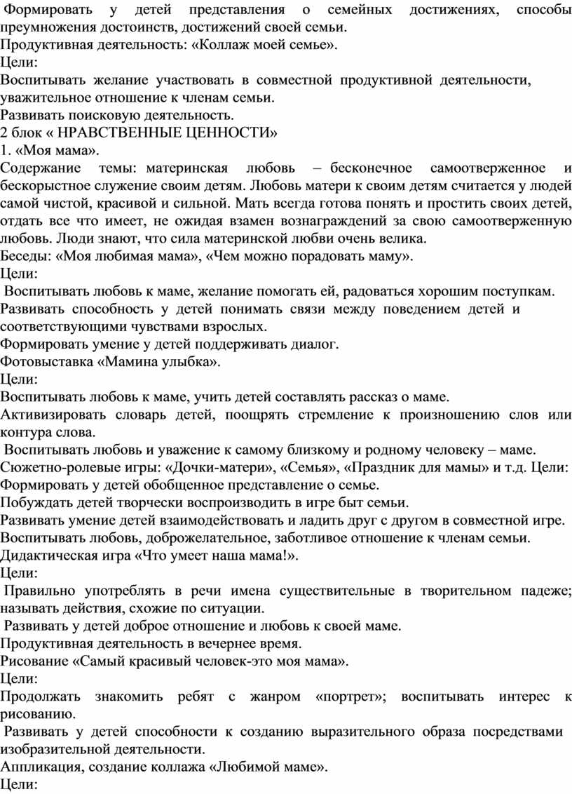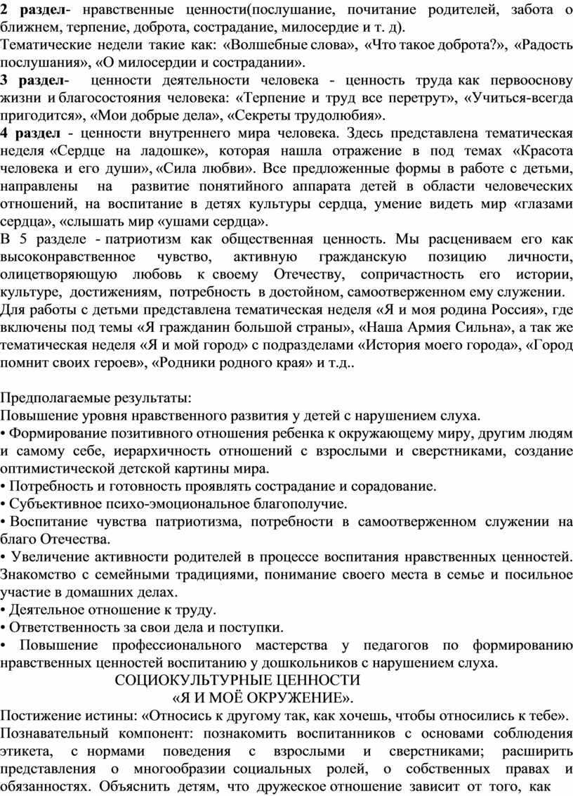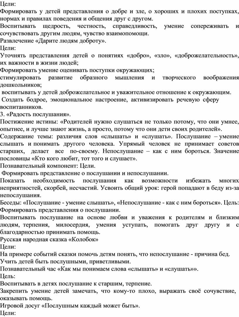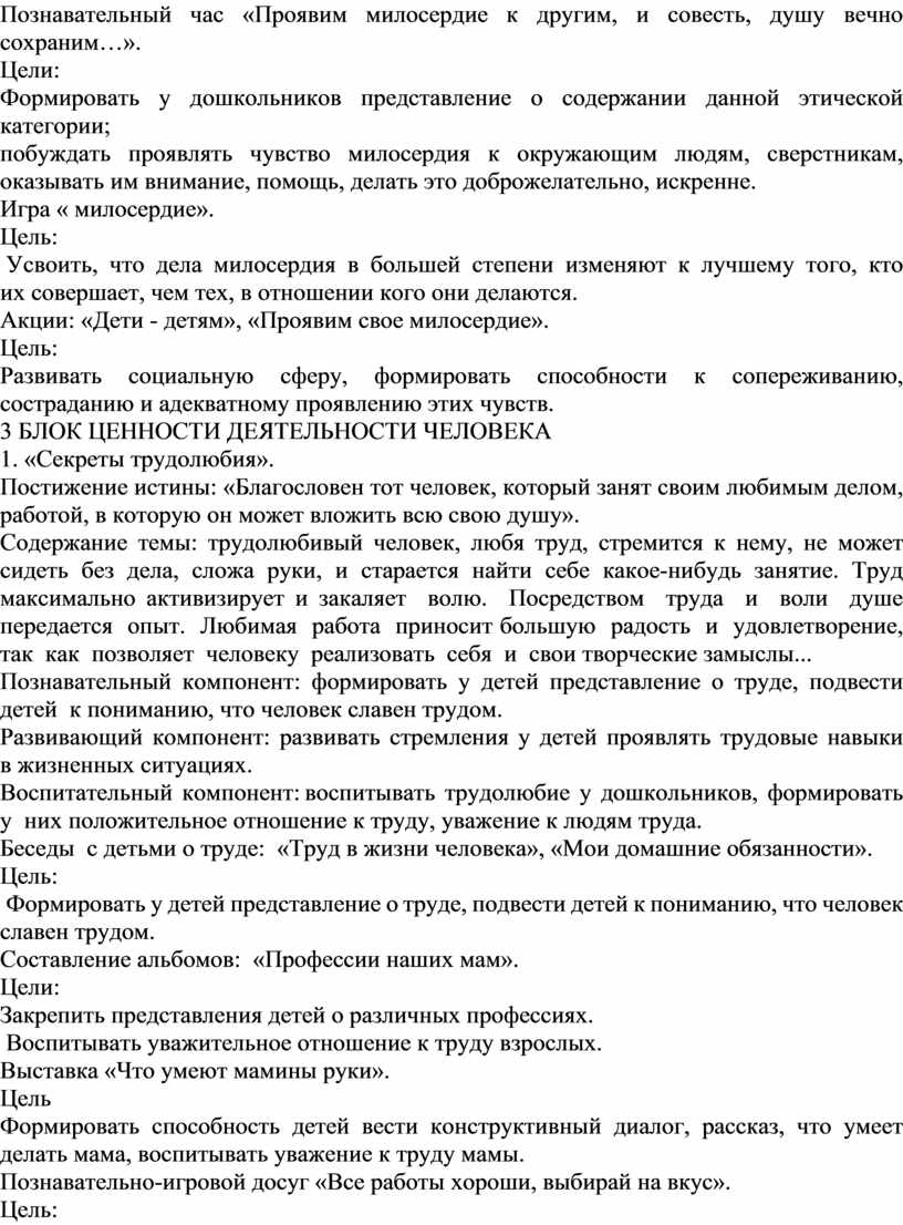 2 раздел- нравственные ценности(послушание, почитание родителей, забота о ближнем, терпение, доброта, сострадание, милосердие и т. д).