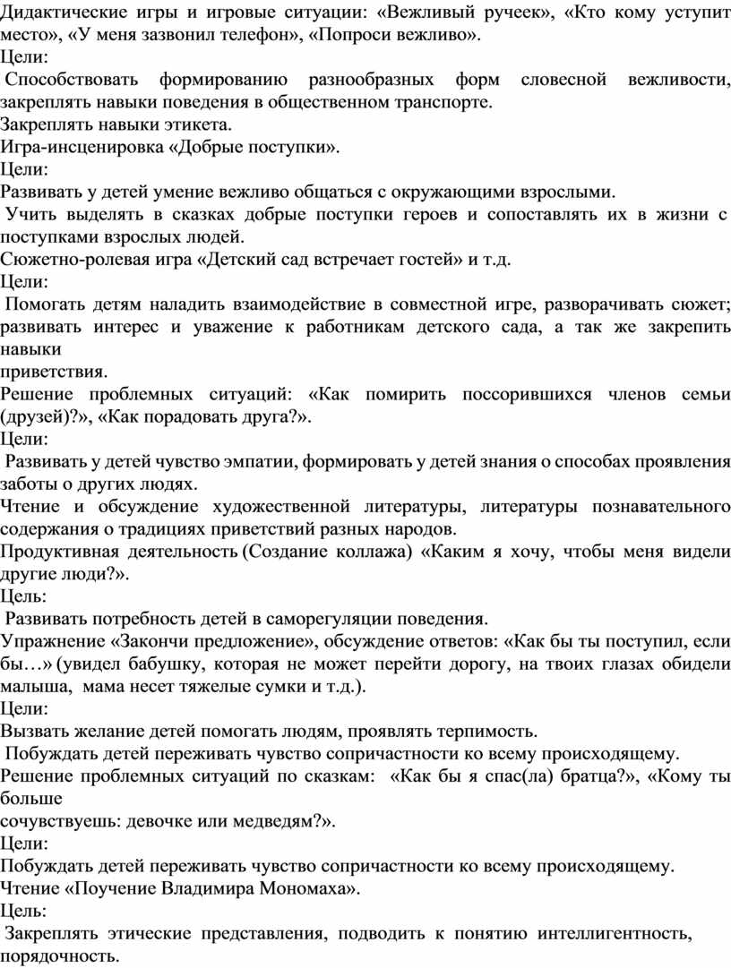 Учитывая, что программы воспитания и обучения детей в дошкольном учреждении в настоящее время предельно насыщенны, предлагаются следующие формы в работе с дошкольниками, которые помогут воспитателям организовать совместную деятельность вместе со своими детьми, сделать её захватывающей, интересной, а самое главное значимой, полезной в сфере нравственного воспитания. (ряд интереснейших, заданий, игр, сценок, правил) с помощью, которых взрослым не составит труда воспитать в своих воспитанниках нравственные ценности.