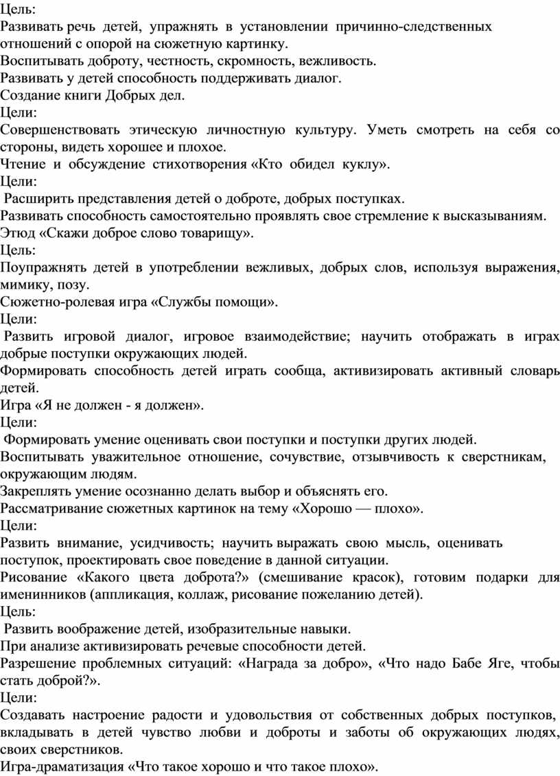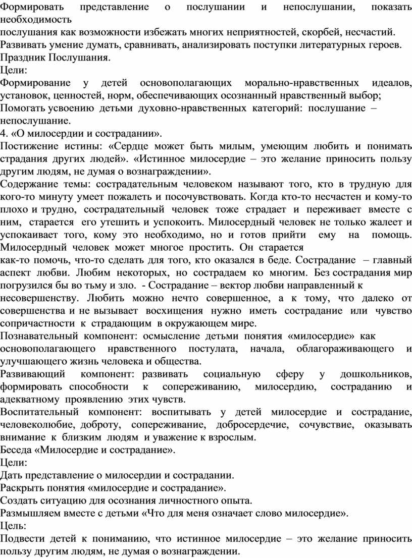 Тематические недели такие как: «Волшебные слова», «Что такое доброта?», «Радость послушания», «О милосердии и сострадании».