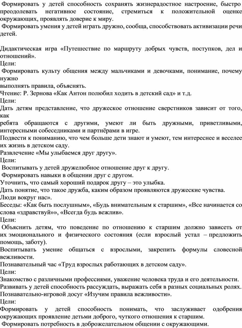 • Формирование позитивного отношения ребенка к окружающему миру, другим людям и самому себе, иерархичность отношений с взрослыми и сверстниками, создание оптимистической детской картины мира.