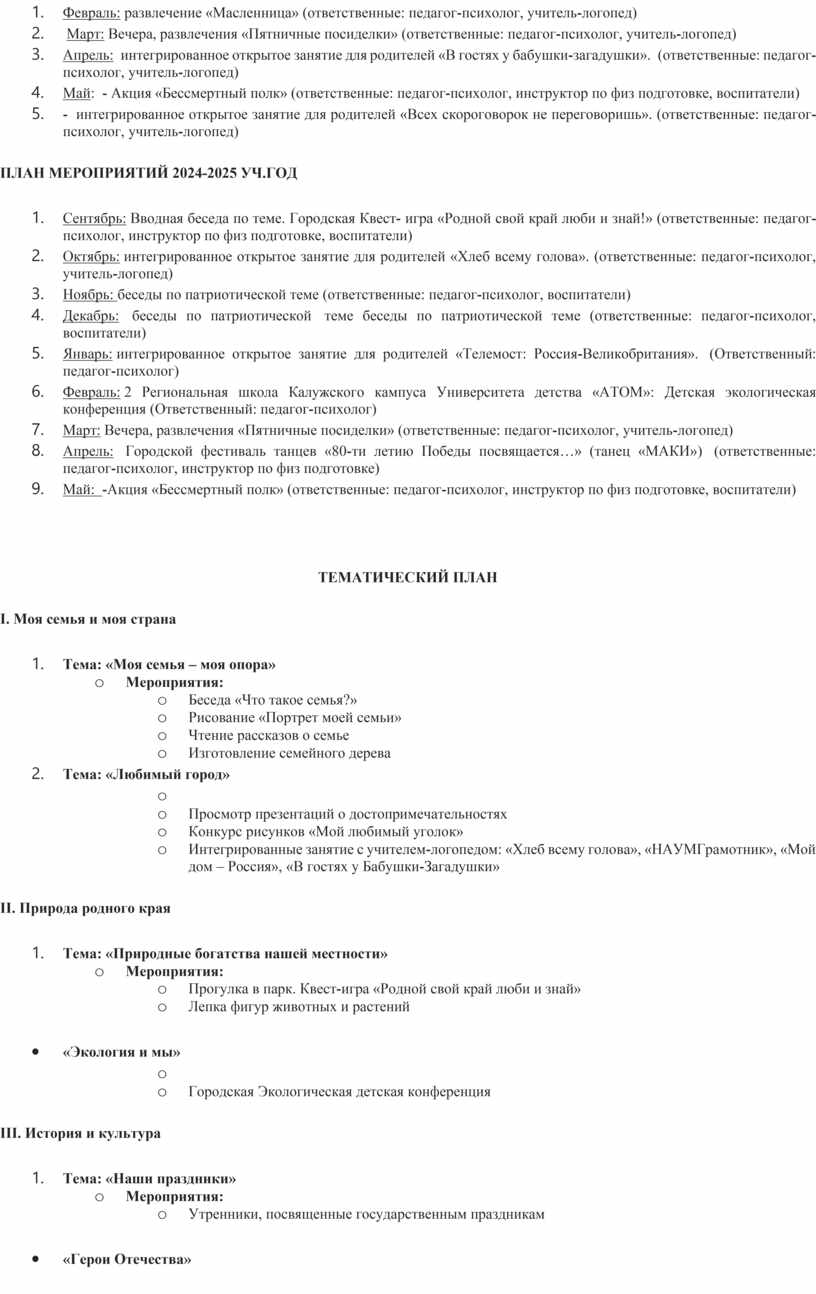 ПЛАН МЕРОПРИЯТИЙ 2024-2025 УЧ.ГОД