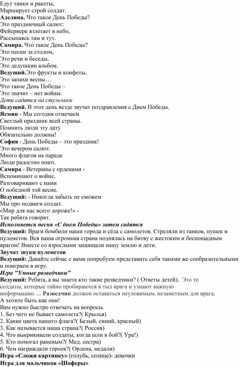 Ведущий: Дорогие ребята! 9 мая вся наша страна будет отмечать самый торжественный, замечательный и светлый праздник - День Победы!