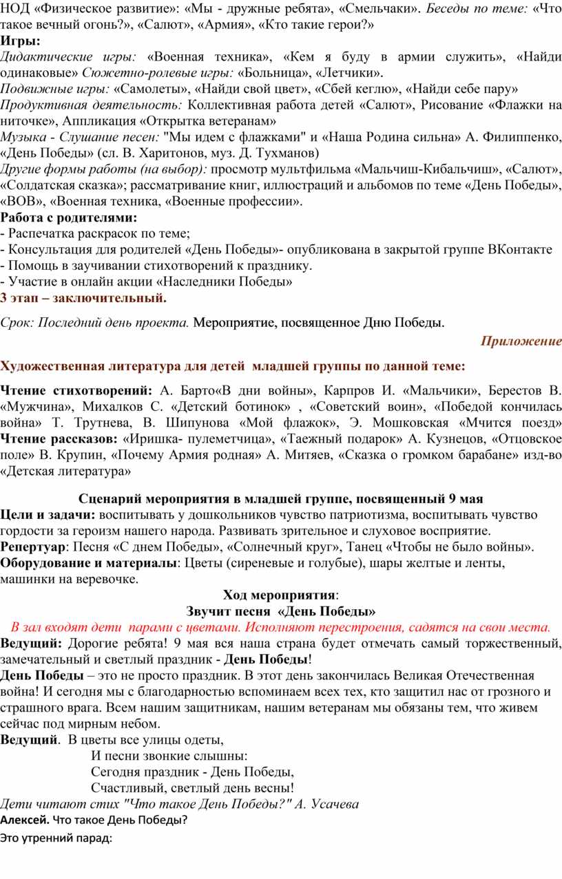 Сценарий мероприятия в младшей группе, посвященный 9 мая