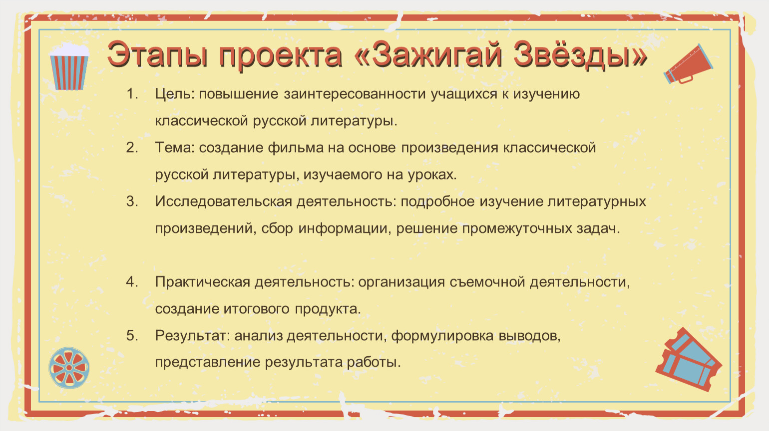Тема: создание фильма на основе произведения классической русской литературы, изучаемого на уроках.