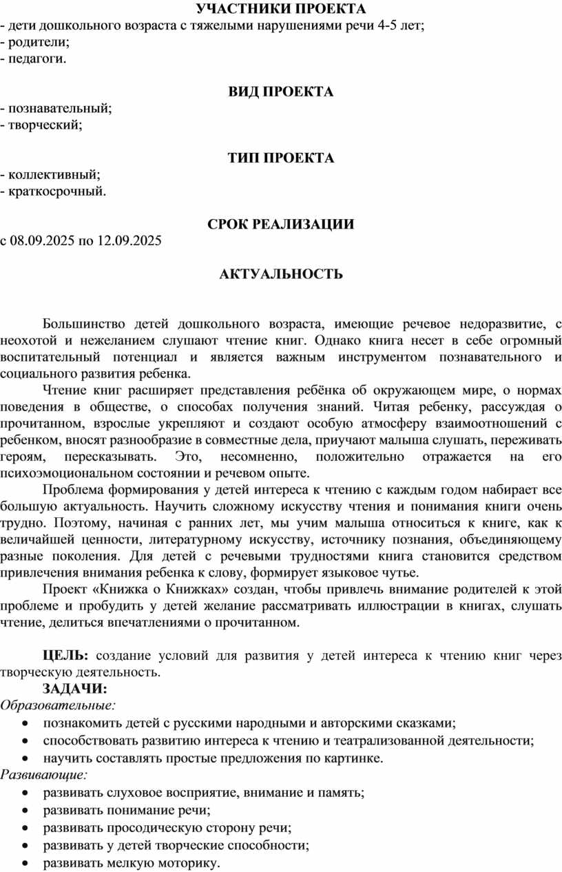 Проект «Книжка о Книжках» создан, чтобы привлечь внимание родителей к этой проблеме и пробудить у детей желание рассматривать иллюстрации в книгах, слушать чтение, делиться впечатлениями о прочитанном.
