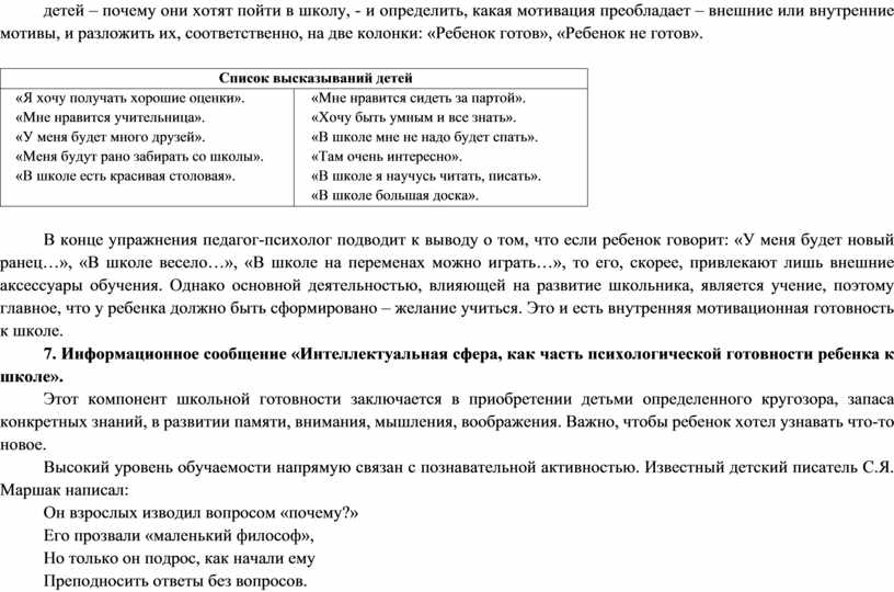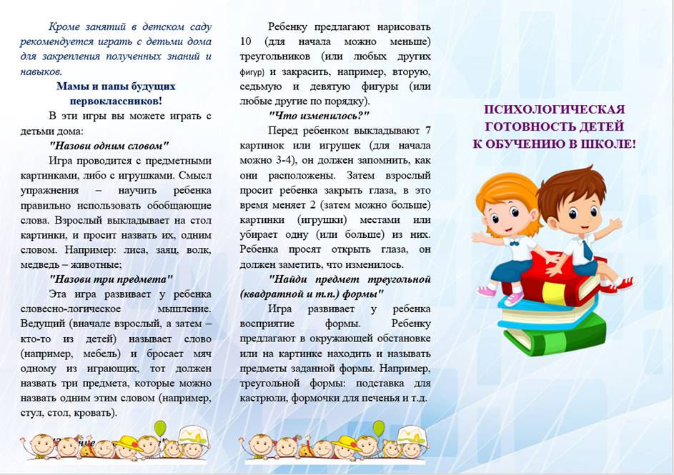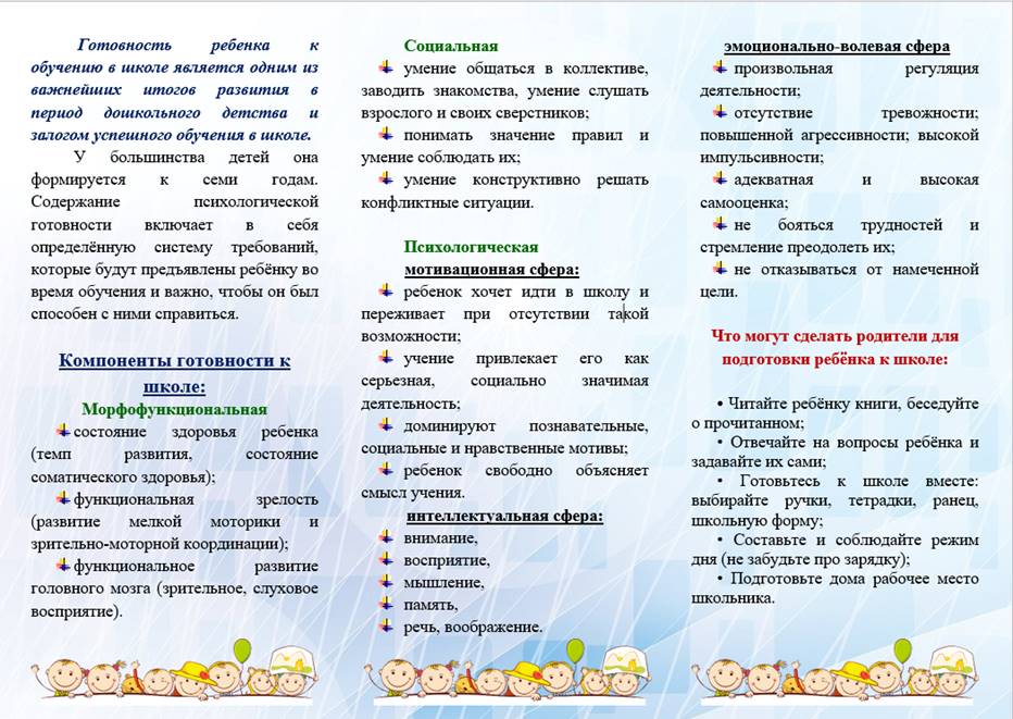 Буклет. Психологическая готовность детей к обучению в школе. |