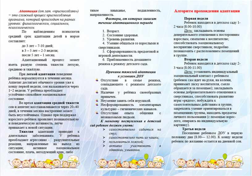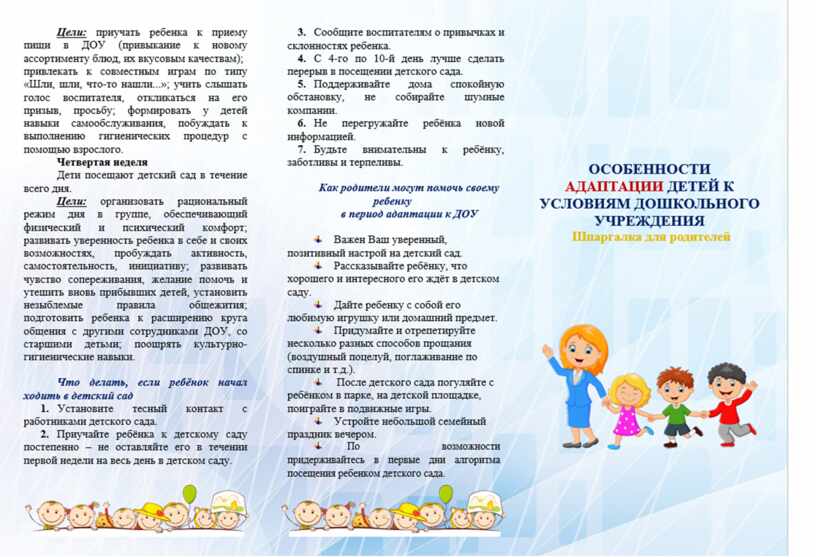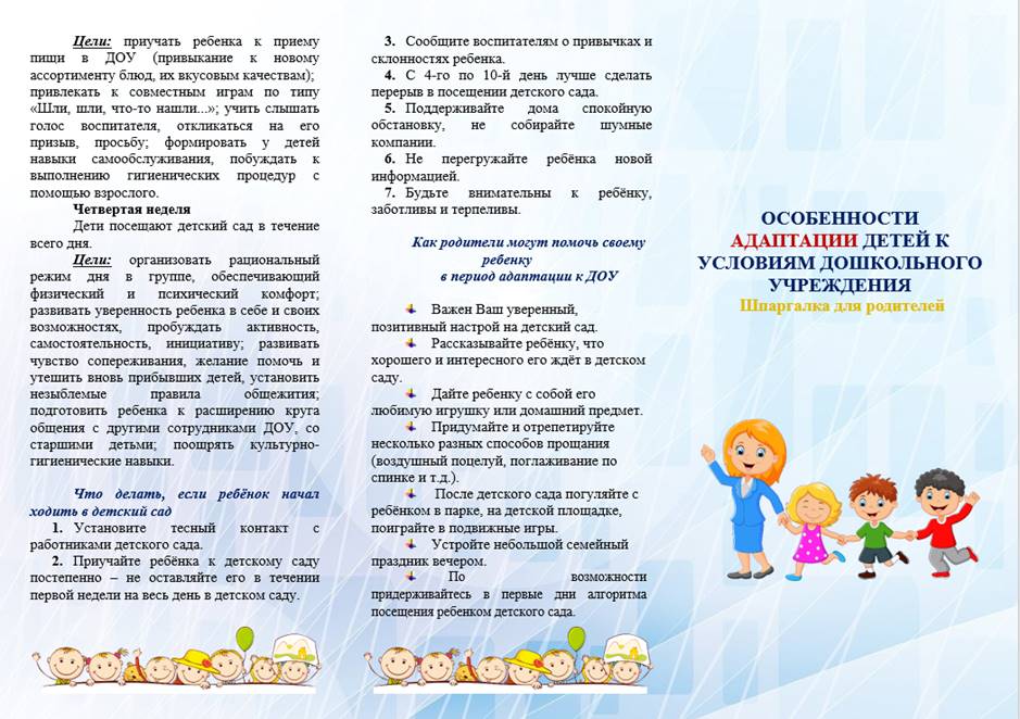 Буклет. Особенности адаптации детей к условиям дошкольного учреждения. |