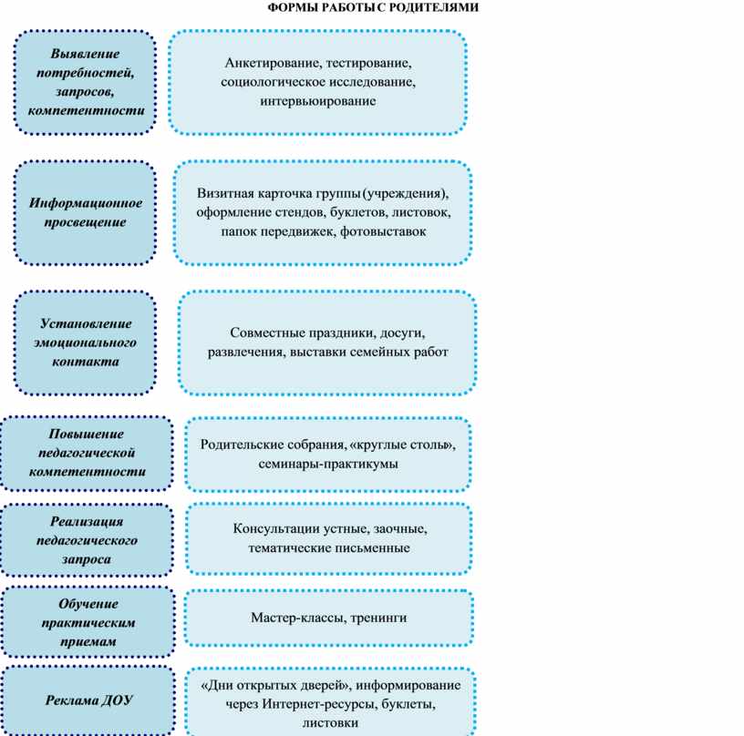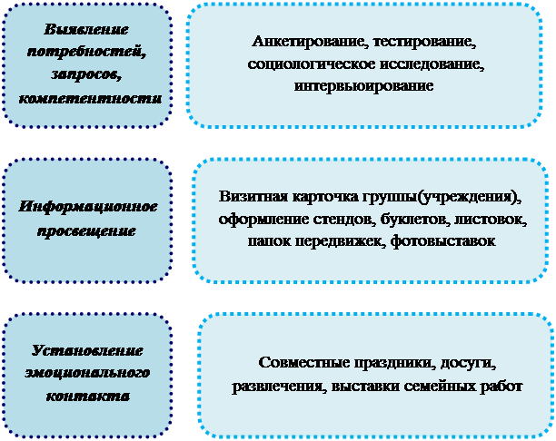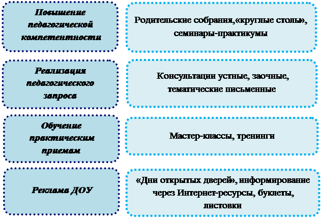 Ø осуществлять психолого-педагогическое просвещение родителей с учетом индивидуальных особенностей, возможностей и потребностей семей;
