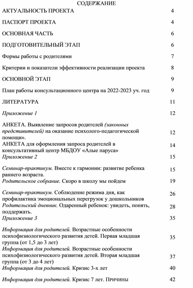 АНКЕТА для оформления запроса родителей в консультативный центр МБДОУ «Алые паруса» |