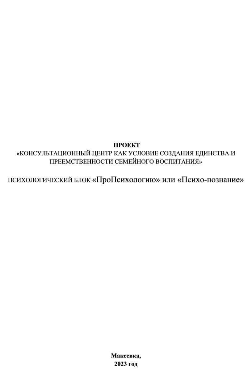 Цель психологического блока: Психологическое сопровождение семьи по вопросам воспитания и развития детей дошкольного возраста. Оказание психологической и консультативной помощи родителям, дети которых посещают и не посещают детский сад.