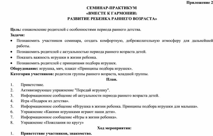 Семинар-практикум. Вместе к гармонии: развитие ребенка раннего возраста. |