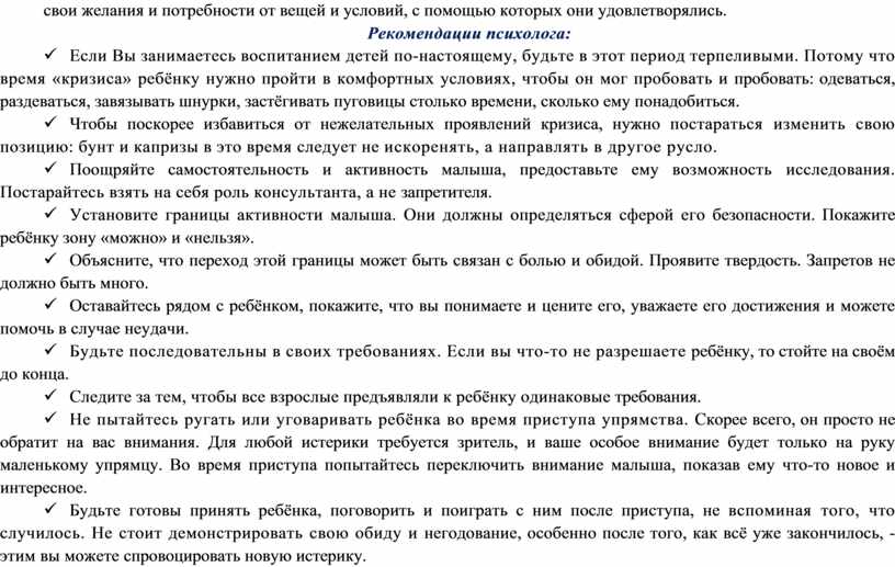 ü Чтобы поскорее избавиться от нежелательных проявлений кризиса, нужно постараться изменить свою позицию: бунт и капризы в это время следует не искоренять, а направлять в другое русло.