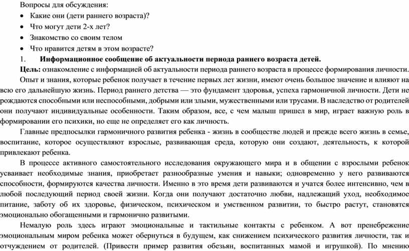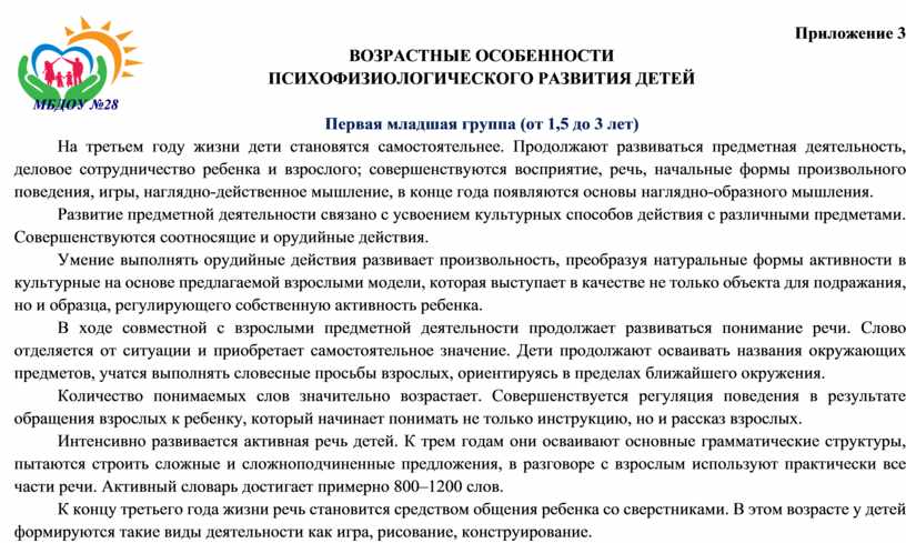 Информация для родителей. Возрастные особенности психофизиологического развития детей. Первая младшая группа (от 1,5 до 3 лет) |