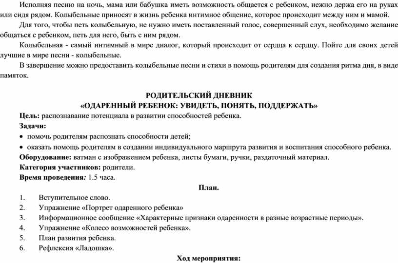 Родительский дневник. Одаренный ребенок: увидеть, понять, поддержать. |
