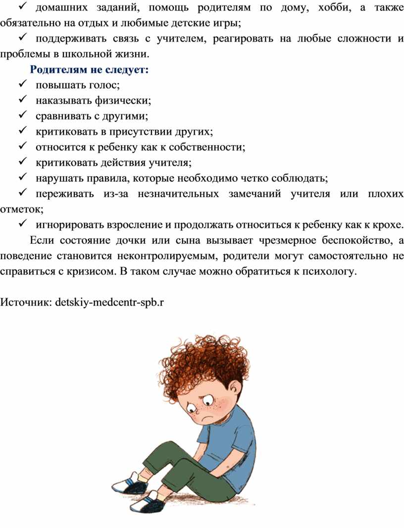 ü переживать из-за незначительных замечаний учителя или плохих отметок;