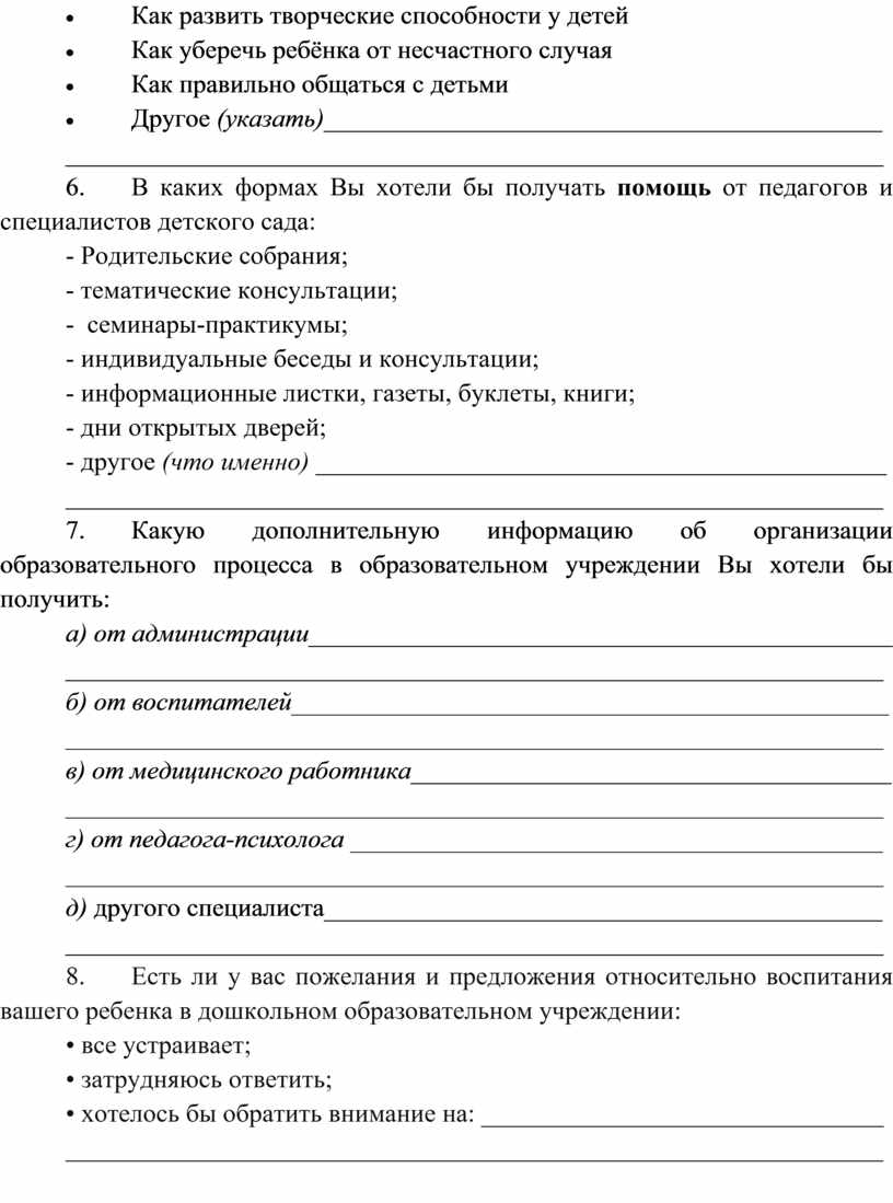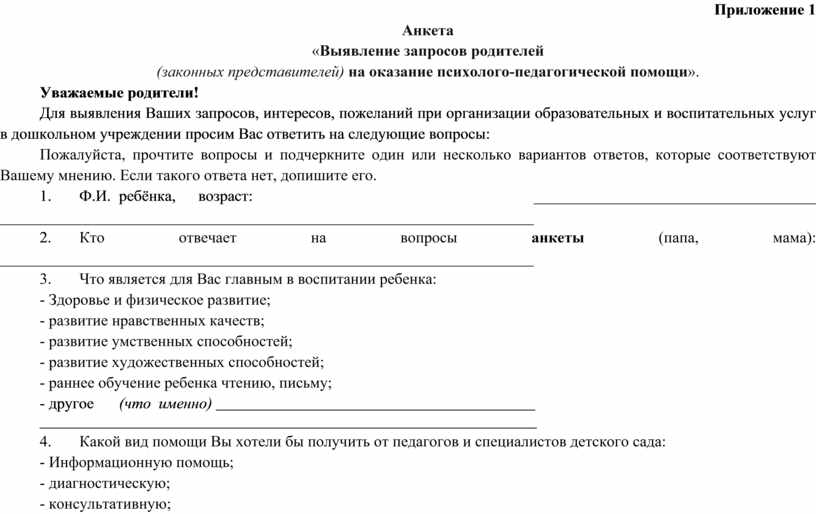 АНКЕТА. Выявление запросов родителей (законных представителей) на оказание психолого-педагогической помощи». |