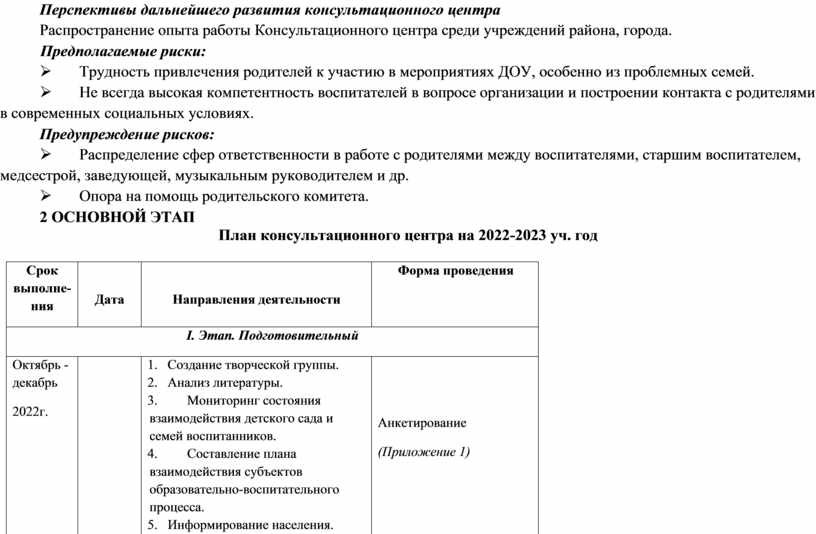 I. Подготовительный этап: октябрь – декабрь 2022г.
