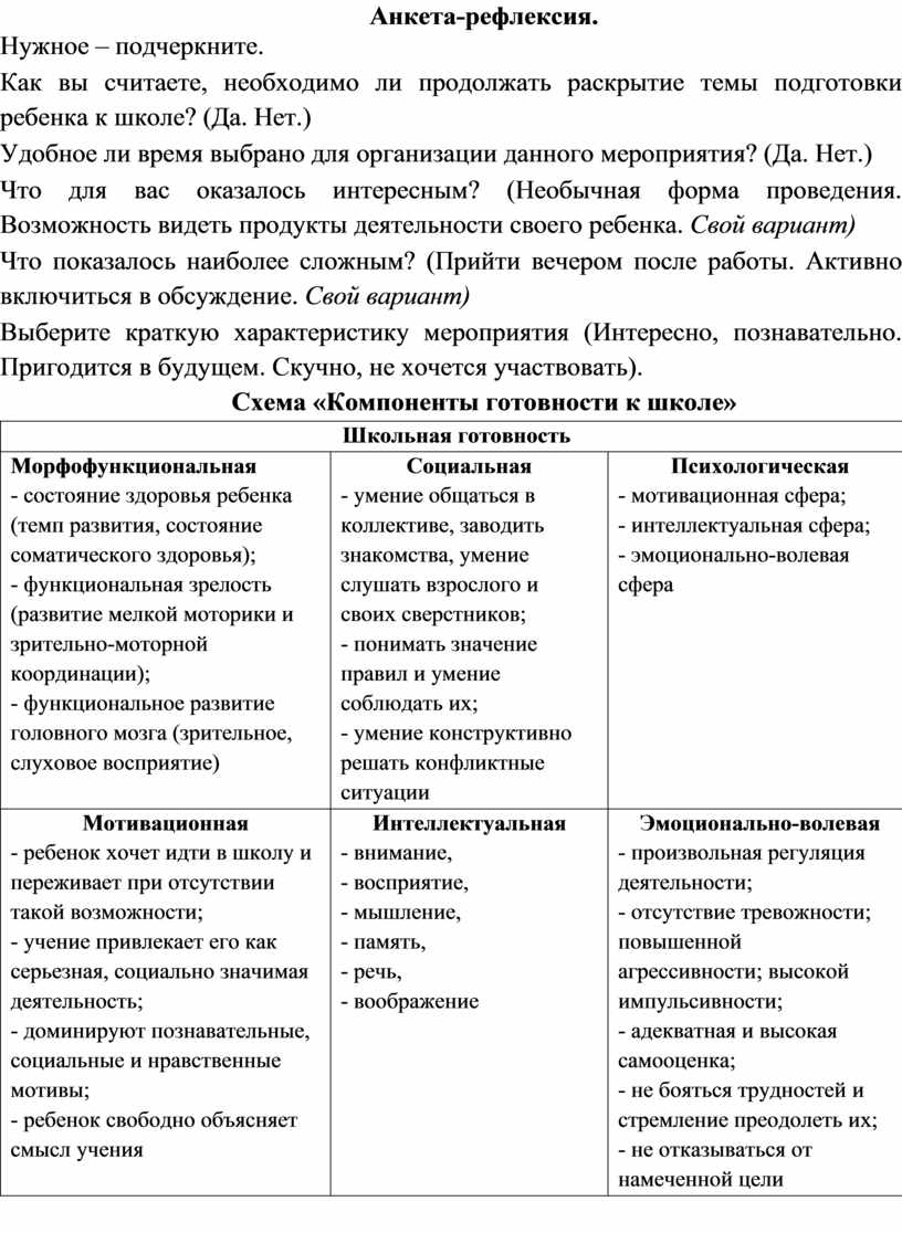 ü оговаривать прошедший день, интересоваться действиями учителя, одноклассников, а также узнавать мнение ребенка о произошедшем;