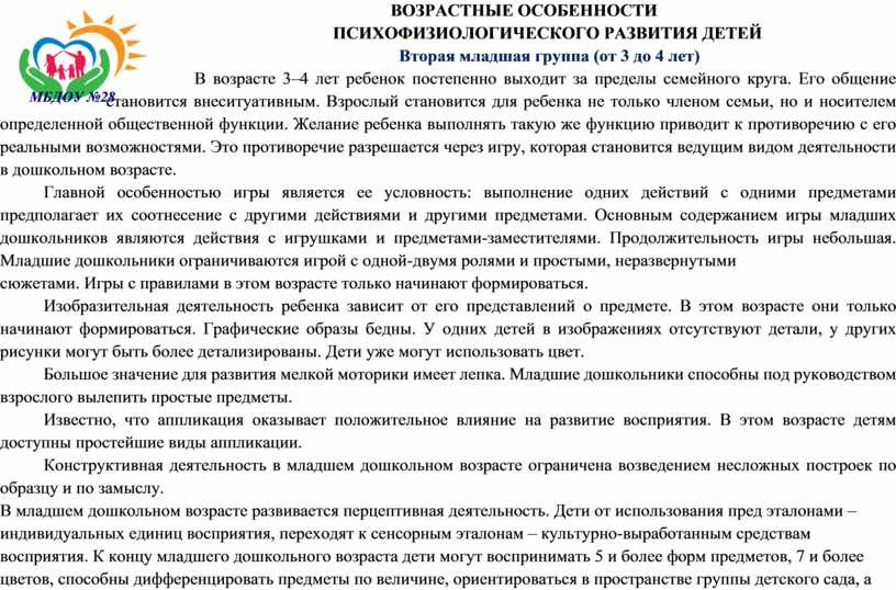Информация для родителей. Возрастные особенности психофизиологического развития детей. Вторая младшая группа (от 3 до 4 лет) |