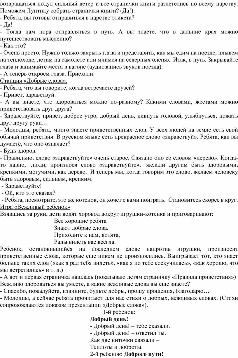 1. Дети узнают новые слова, позволяющие соблюдать речевой этикет.