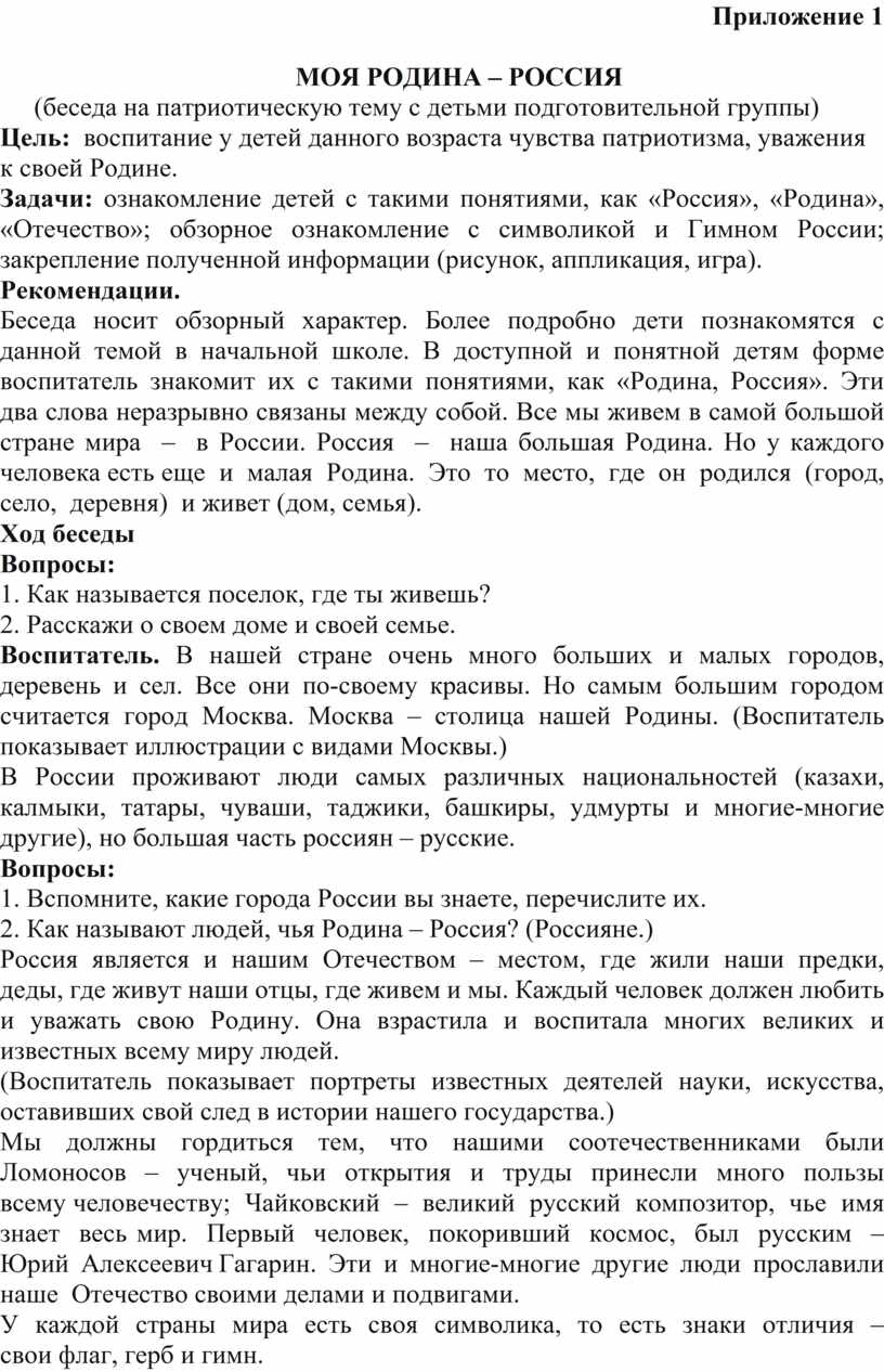 (беседа на патриотическую тему с детьми подготовительной группы)