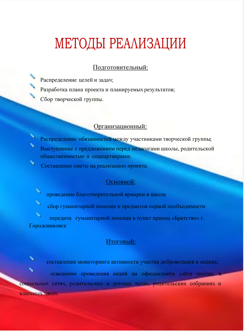 Основной стратегической целью проекта является увеличение количества вовлеченных взрослых и детей в общее дело. Пока наши бойцы защищают интересы Отчизны, мы просто обязаны всеми силами их поддерживать! Чтобы каждый воин чувствовал, что за его спиной единым фронтом стоят в тылу тысячи земляков! И мы будем делать это, пока они защищают наш покой. Вместе мы – сила! |