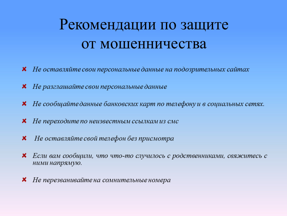 Не сообщайте данные банковских карт по телефону и в социальных сетях.