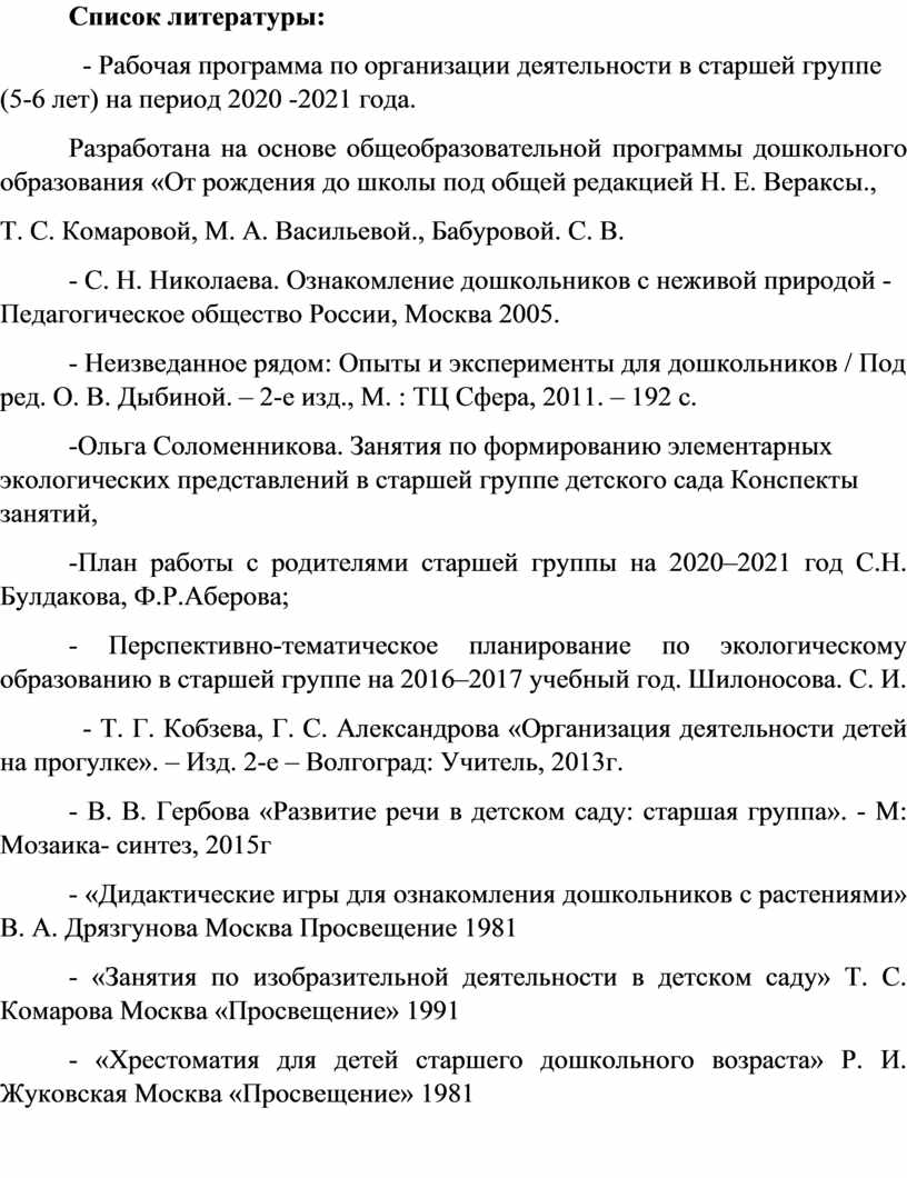 - С. Н. Николаева. Ознакомление дошкольников с неживой природой - Педагогическое общество России, Москва 2005.