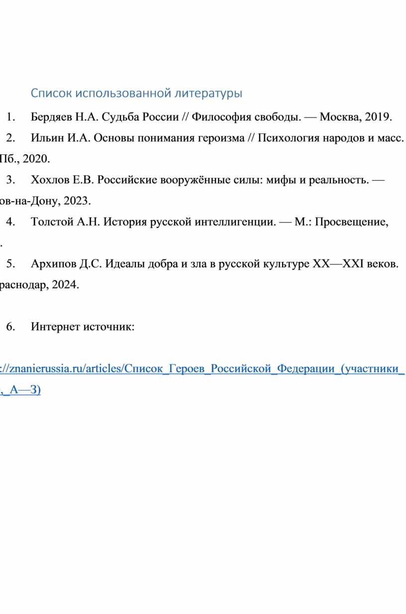 2. Ильин И.А. Основы понимания героизма // Психология народов и масс. — СПб., 2020.