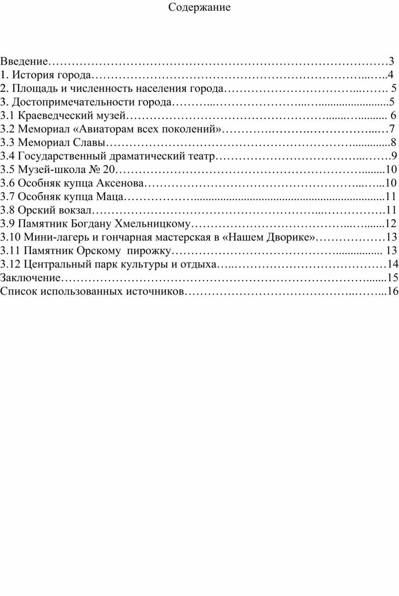 3.11 Памятник Орскому пирожку……………………………………................ 13
