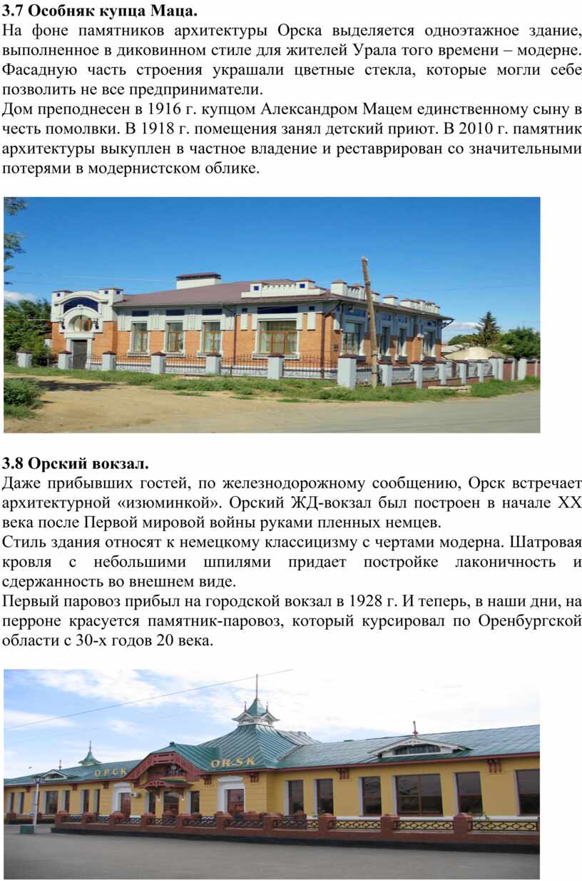 3. Достопримечательности города Орска.