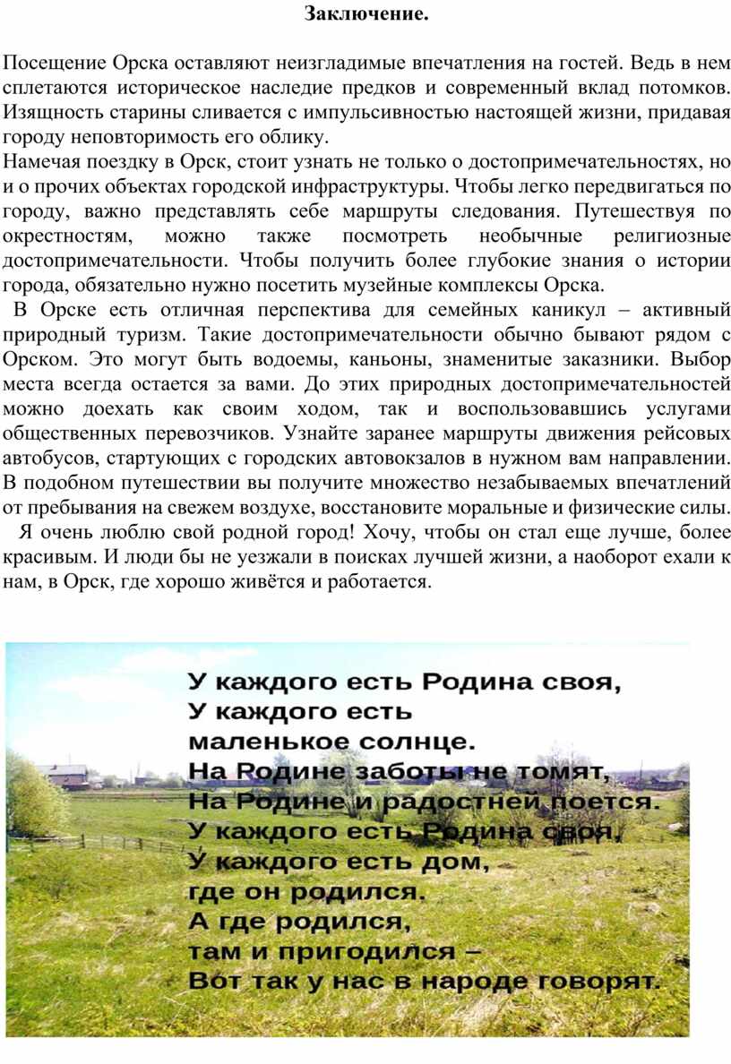 Посещение Орска оставляют неизгладимые впечатления на гостей. Ведь в нем сплетаются историческое наследие предков и современный вклад потомков. Изящность старины сливается с импульсивностью настоящей жизни, придавая городу неповторимость его облику.