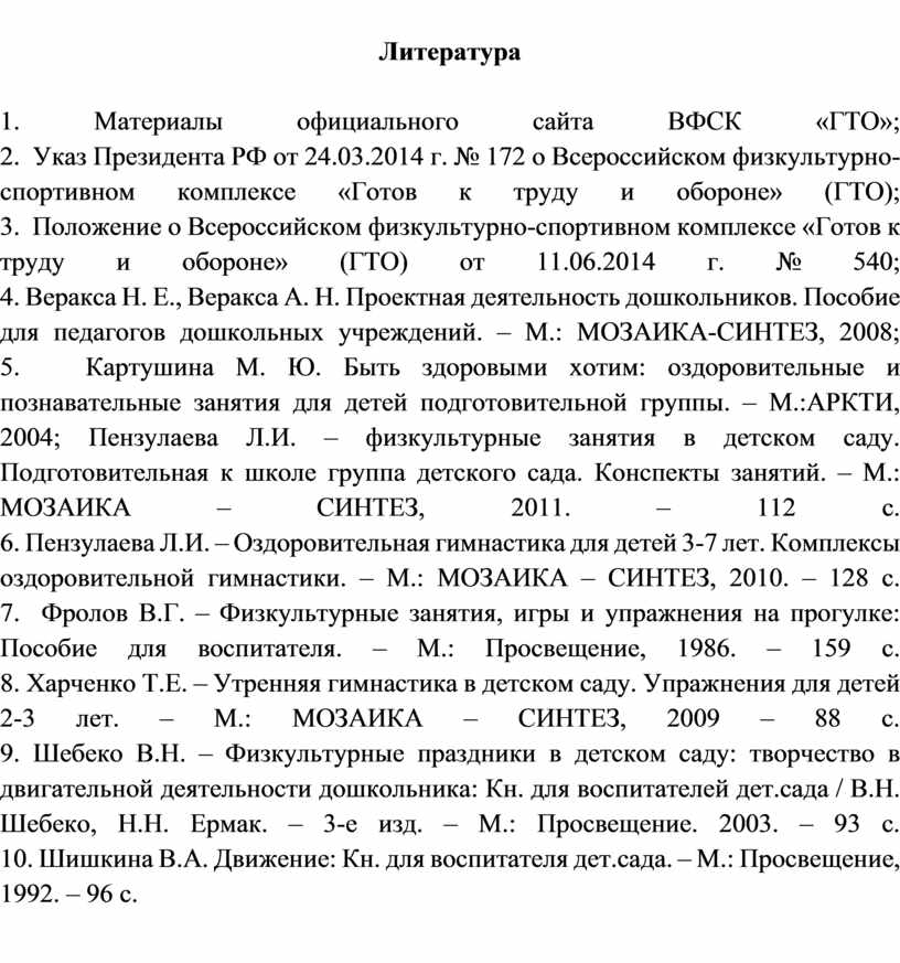 10. Шишкина В.А. Движение: Кн. для воспитателя дет.сада. – М.: Просвещение,