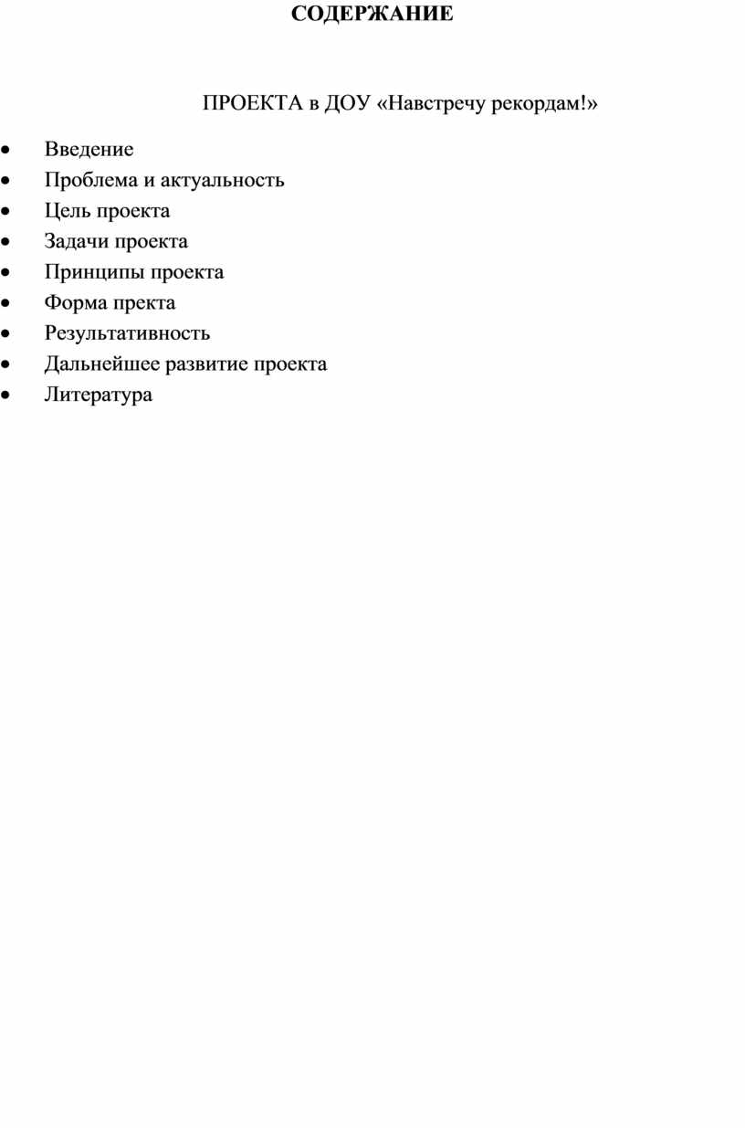 ПРОЕКТА в ДОУ «Навстречу рекордам!»