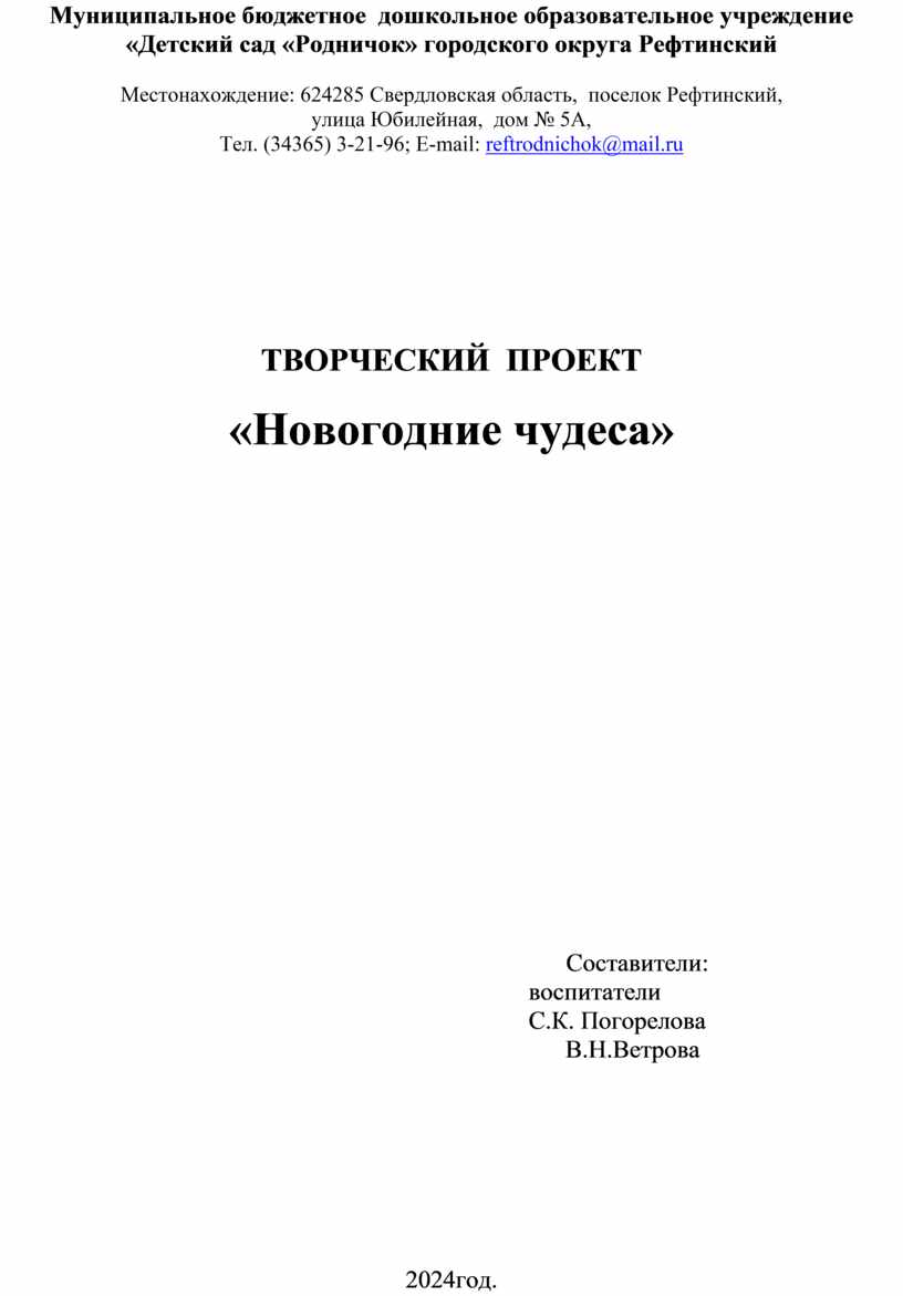 Тел. (34365) 3-21-96; E-mail: reftrodnichok@mail.ru