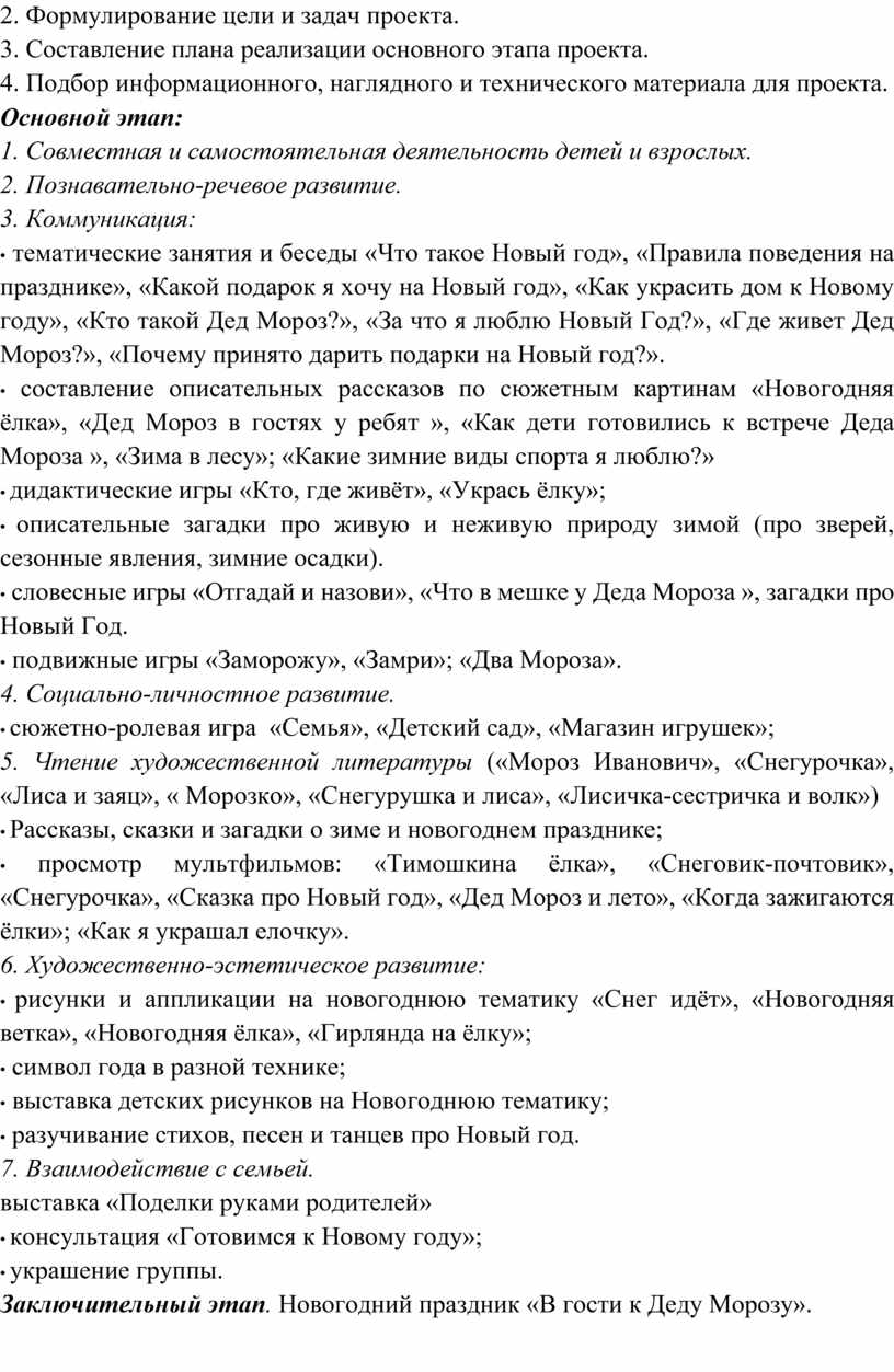 • тематические занятия и беседы «Что такое Новый год», «Правила поведения на празднике», «Какой подарок я хочу на Новый год», «Как украсить дом к Новому году», «Кто такой Дед Мороз?», «За что я люблю Новый Год?», «Где живет Дед Мороз?», «Почему принято дарить подарки на Новый год?».
