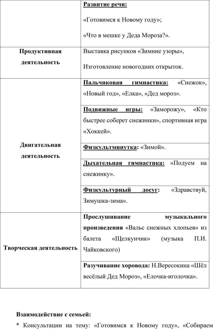 * Консультации на тему: «Готовимся к Новому году», «Собираем ребенка на зимнюю прогулку», «Разбудите ёлку или чудеса в домашних условиях», «Правила зимней безопасности».