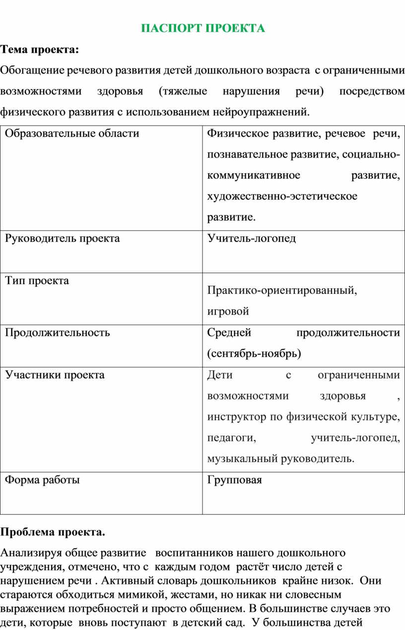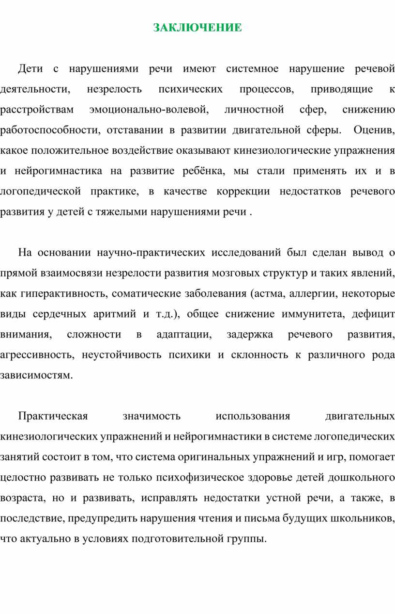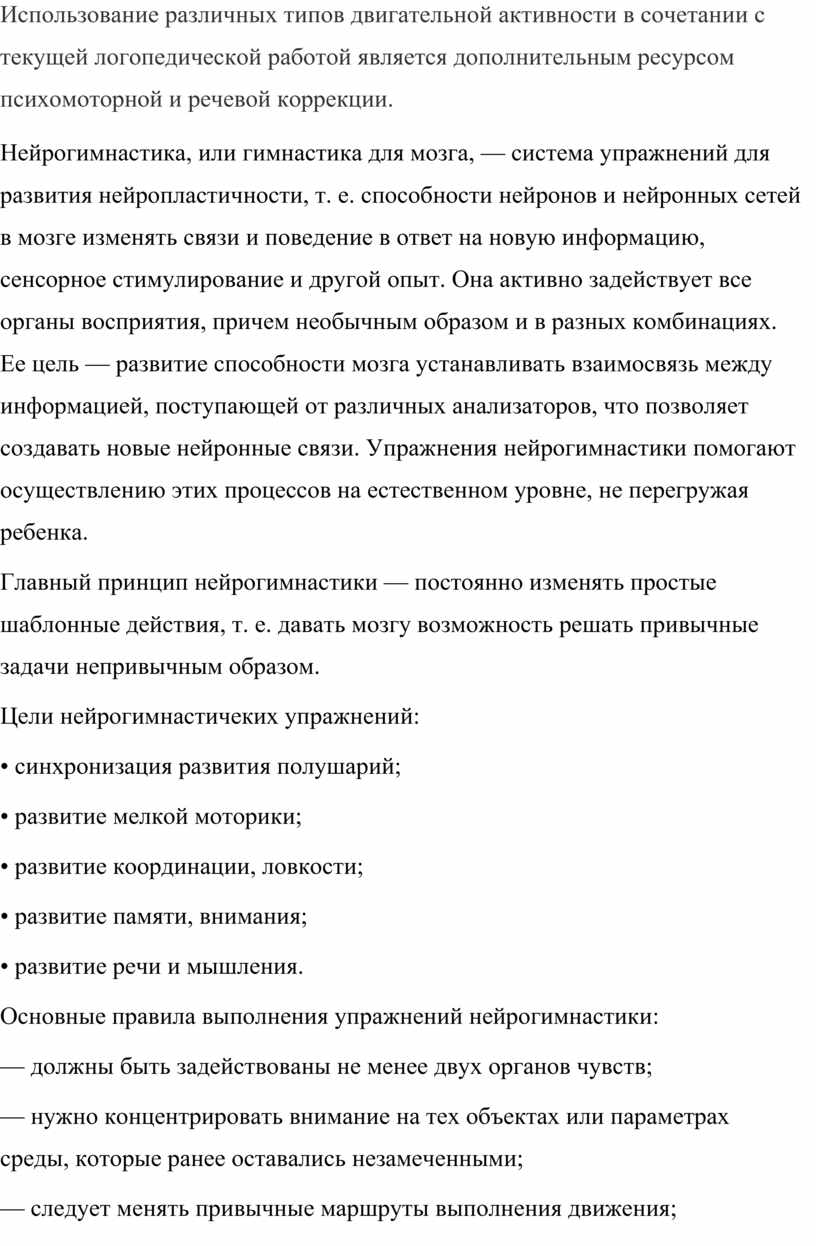 Обогащение речевого развития детей дошкольного возраста с ограниченными возможностями здоровья (тяжелые нарушения речи) посредством физического развития с использованием нейроупражнений.