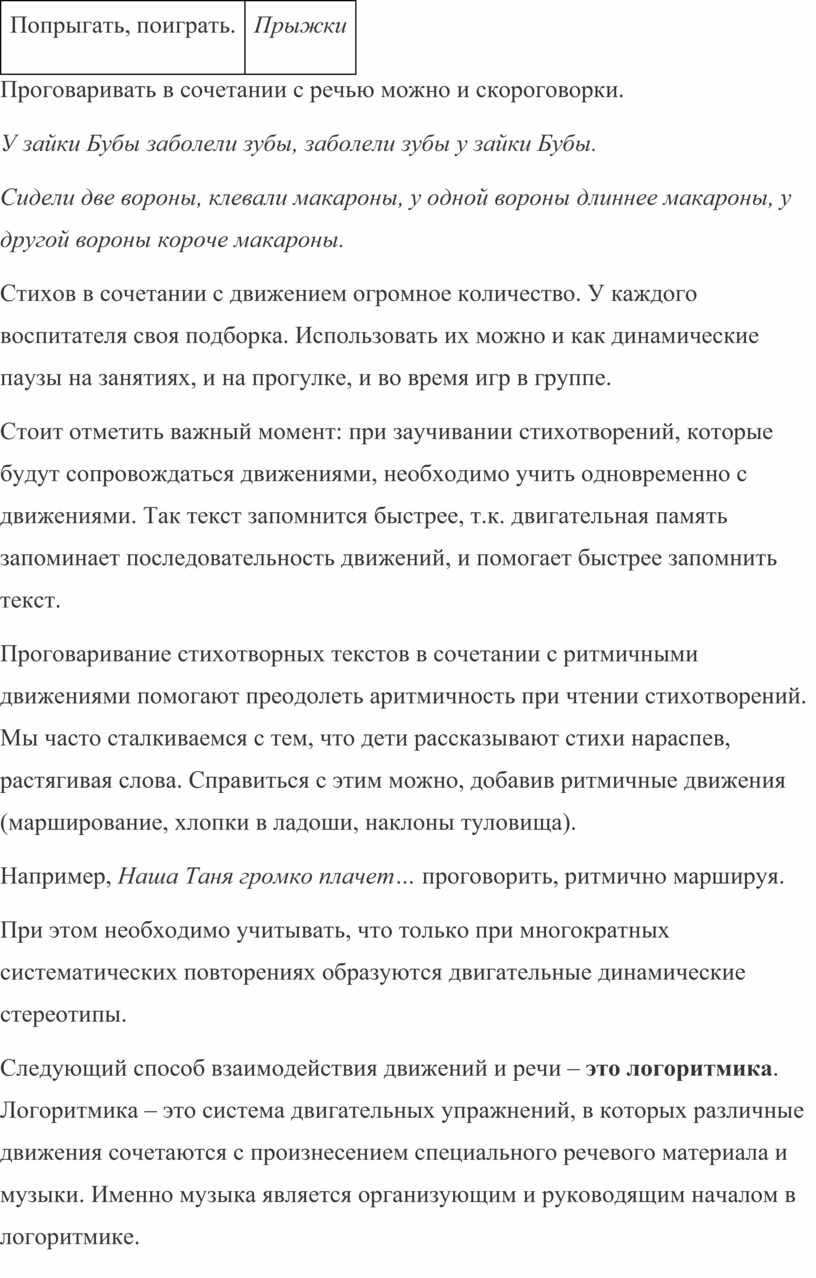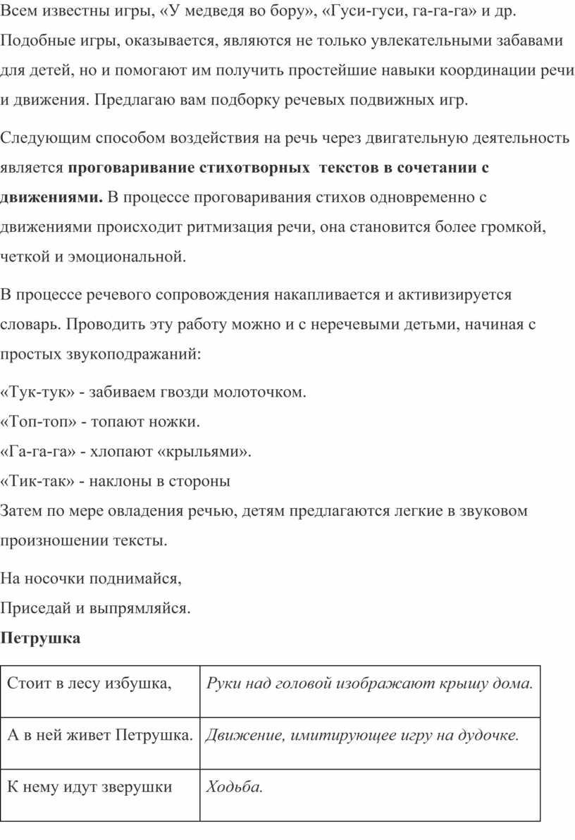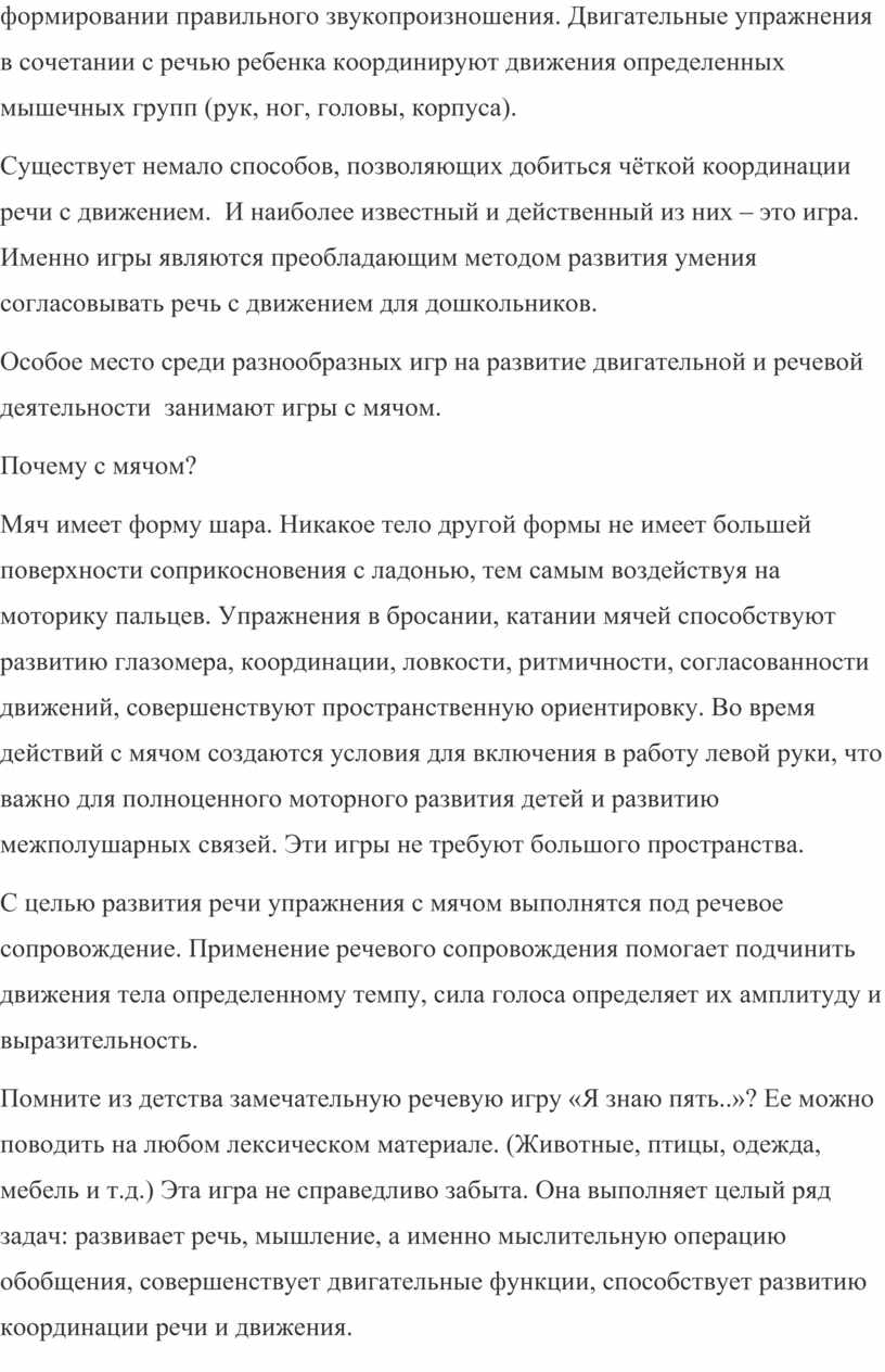 Следовательно, сочетание речи и движения является очень важным компонентом на пути развития речевых и двигательных функций детей.