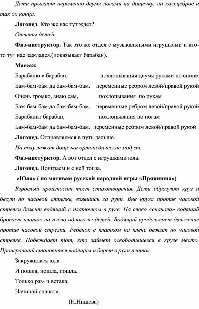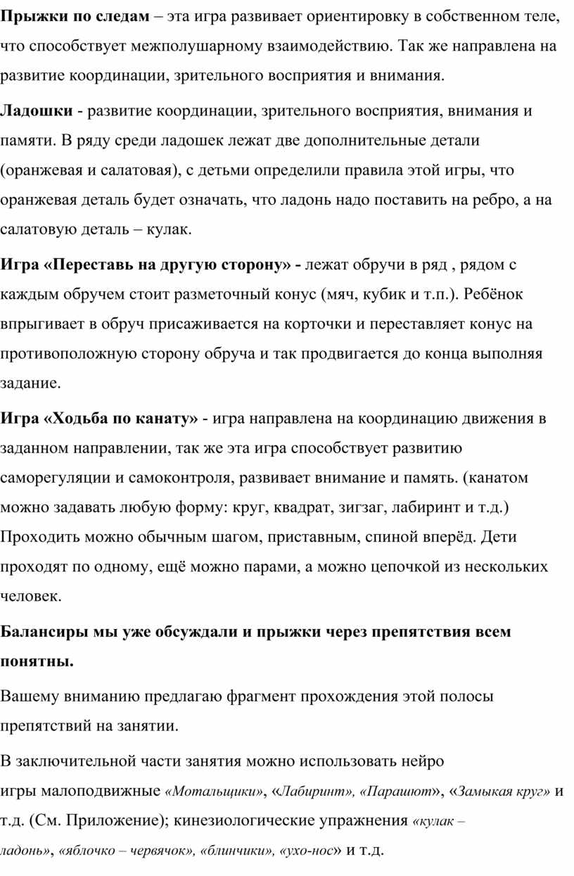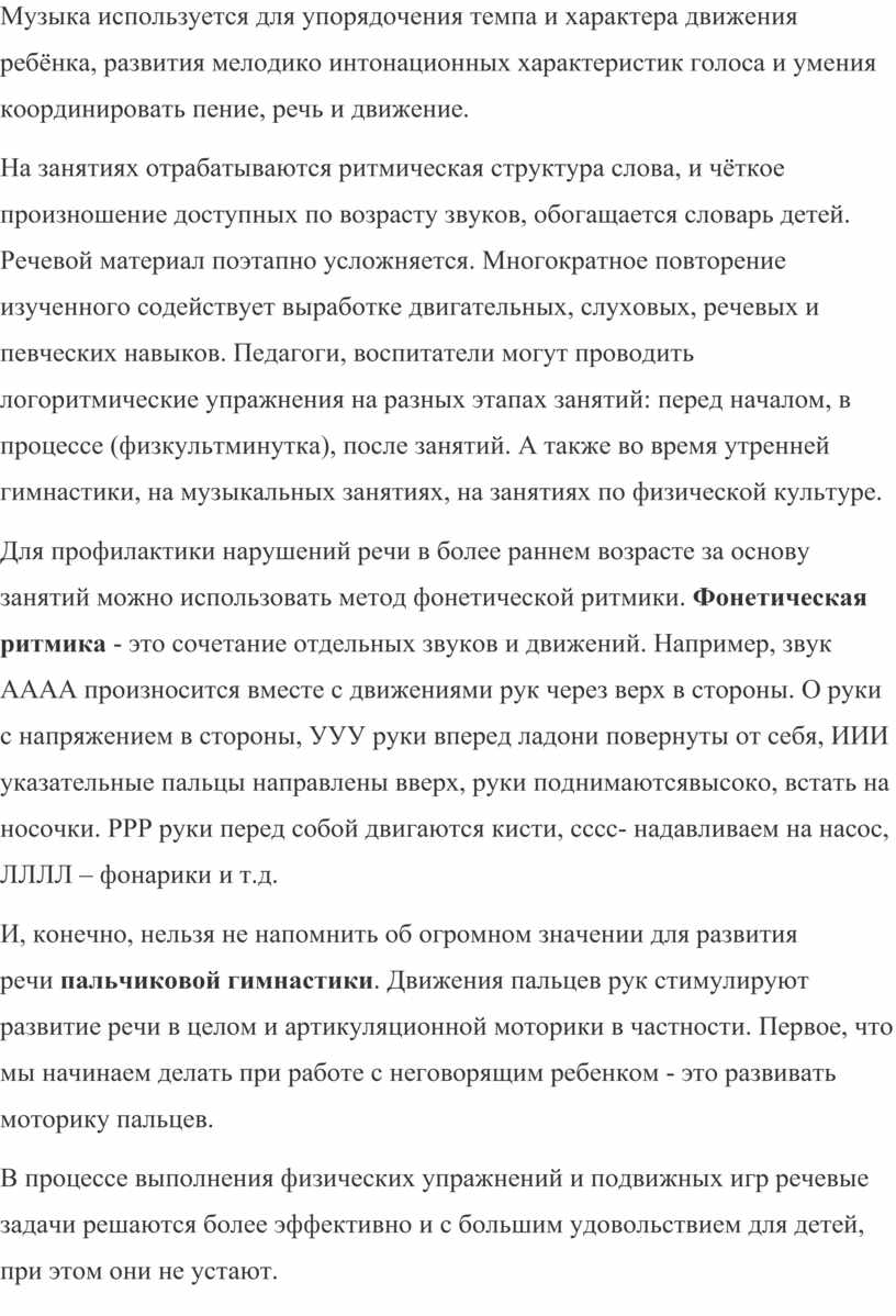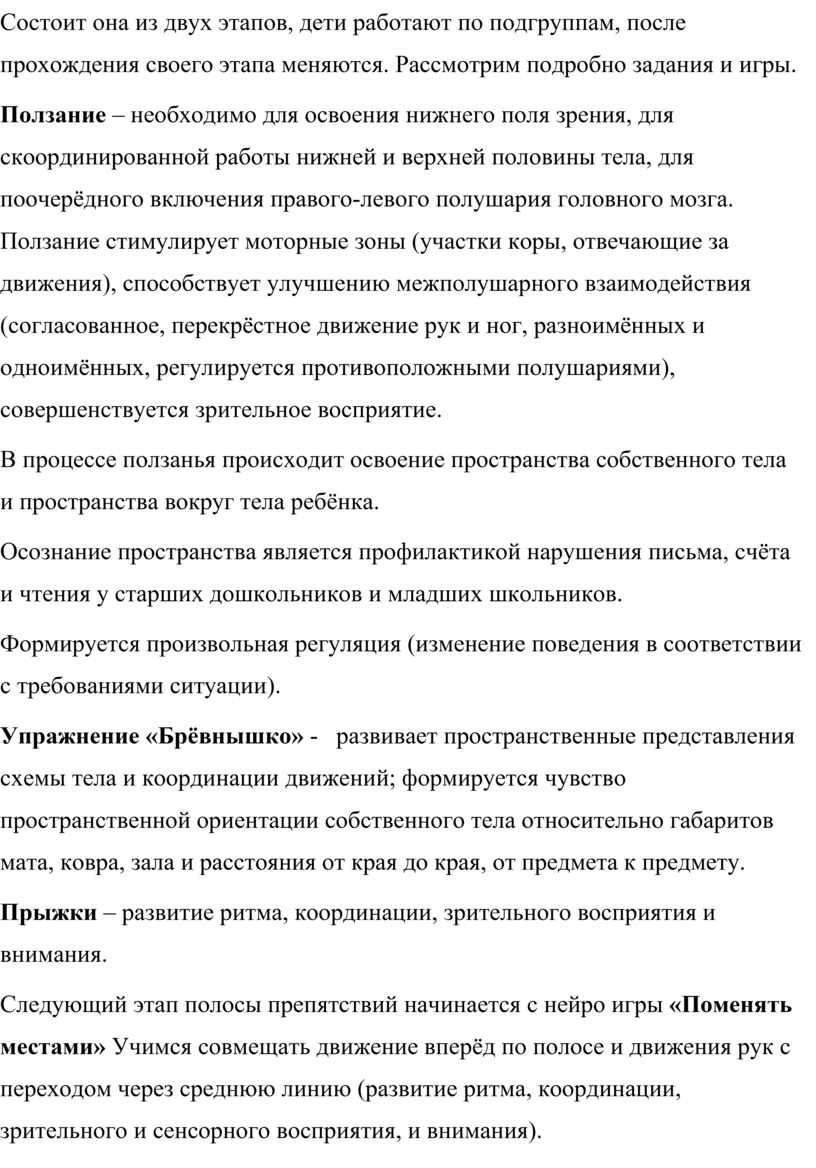 Следовательно, сочетание речи и движения является очень важным компонентом на пути развития речевых и двигательных функций детей.