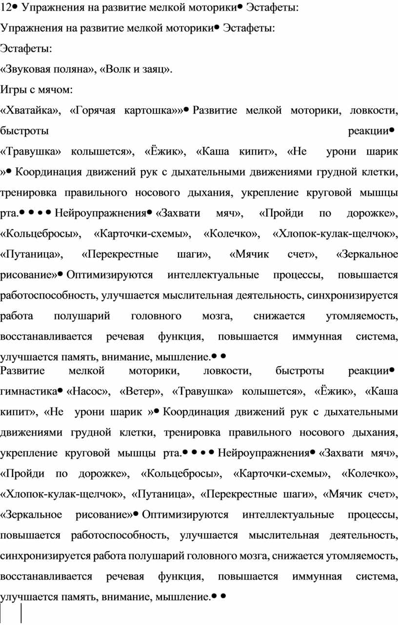 ü создать условия для повышения двигательной деятельности, что способствовало бы развитию речи дошкольника;