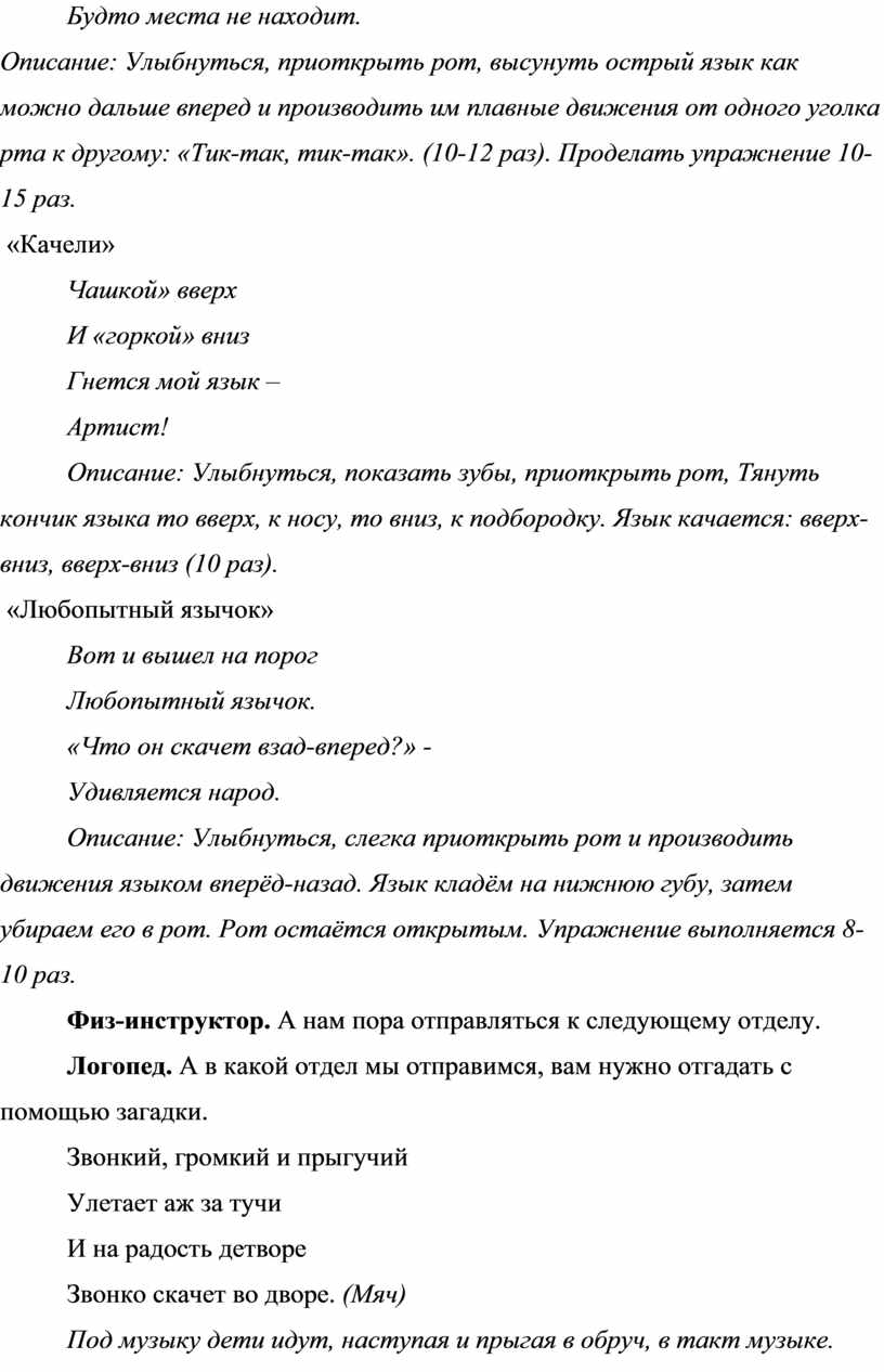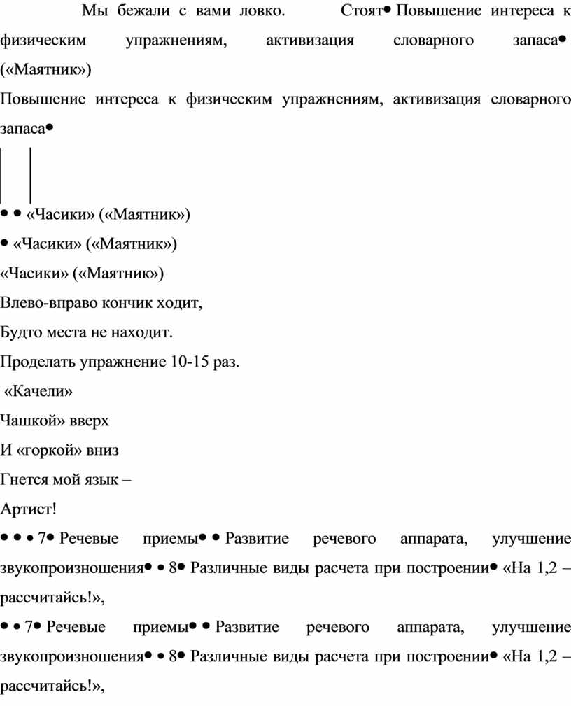 ü формировать чёткость артикуляции в процессе выполнения физических упражнений;