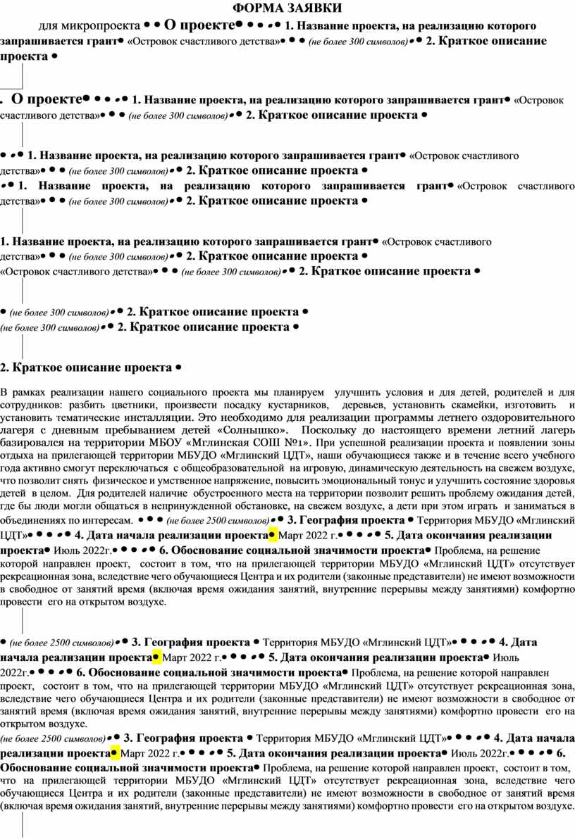 ФОРМА ЗАЯВКИ для микропроекта |