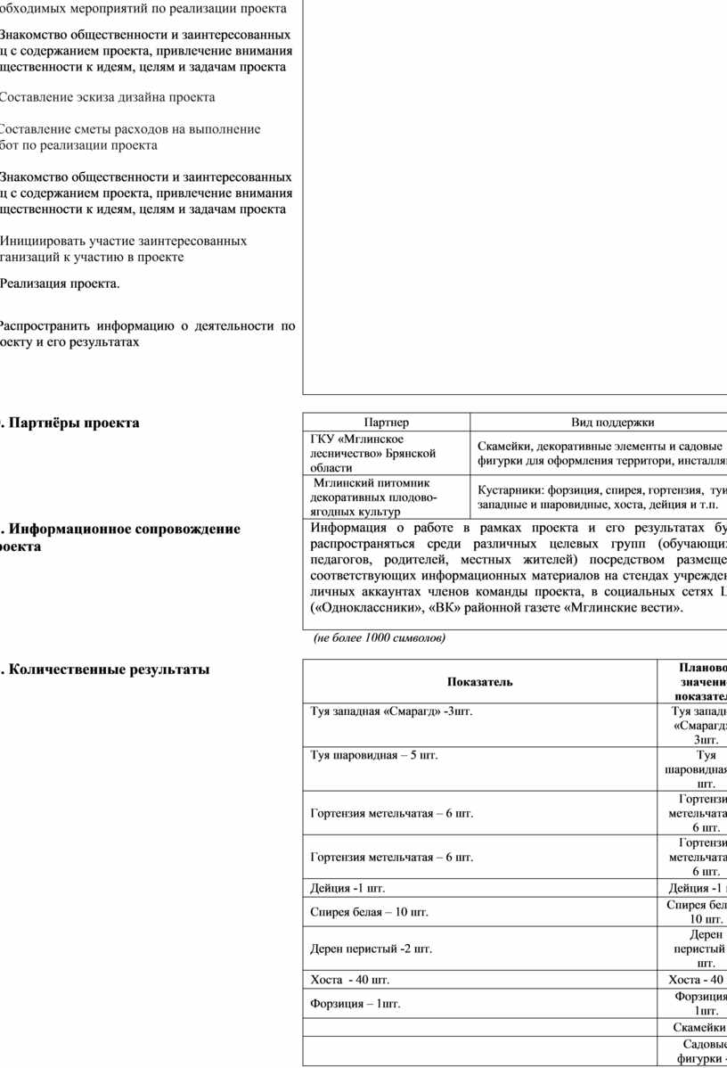 2. Организовать инициативную группу (команду) для проведения необходимых мероприятий по реализации проекта 3. Знакомство общественности и заинтересованных лиц с содержанием проекта, привлечение внимания общественности к идеям, целям и задачам проекта