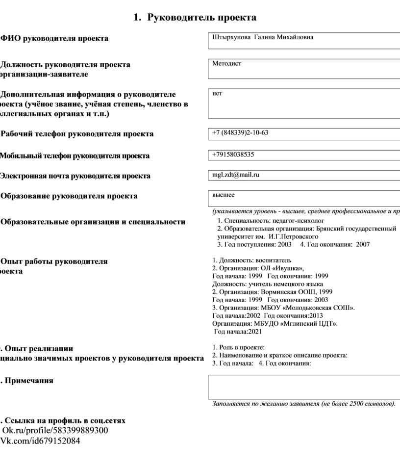 1. ФИО руководителя проекта |