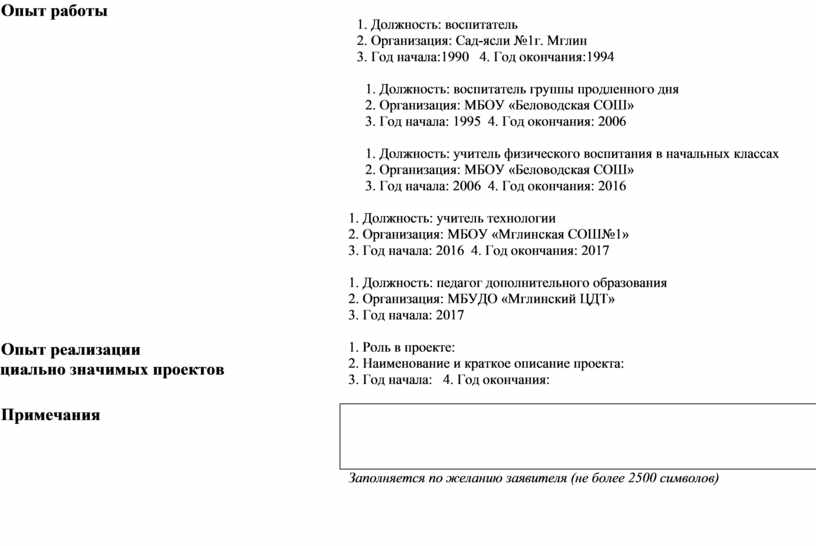 Заполняется по желанию заявителя (не более 2500 символов).