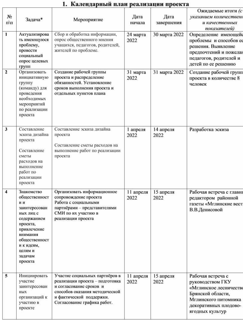 5. Календарный план реализации проекта