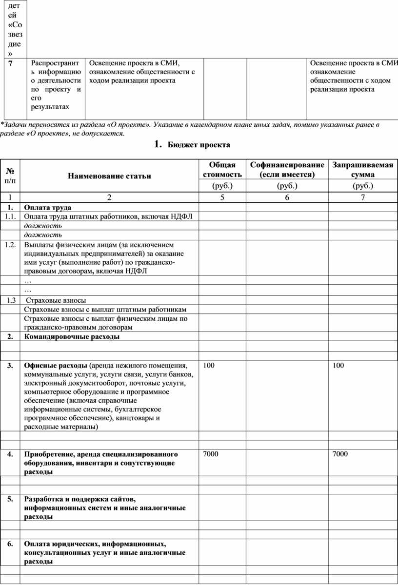 *Задачи переносятся из раздела «О проекте». Указание в календарном плане иных задач, помимо указанных ранее в разделе «О проекте», не допускается.