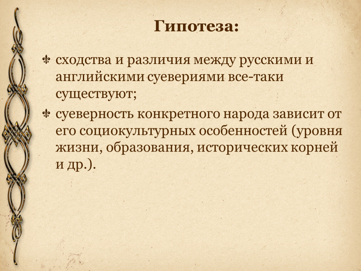 Предмет исследования - сходства и различия в приметах и суевериях в России и Британии.