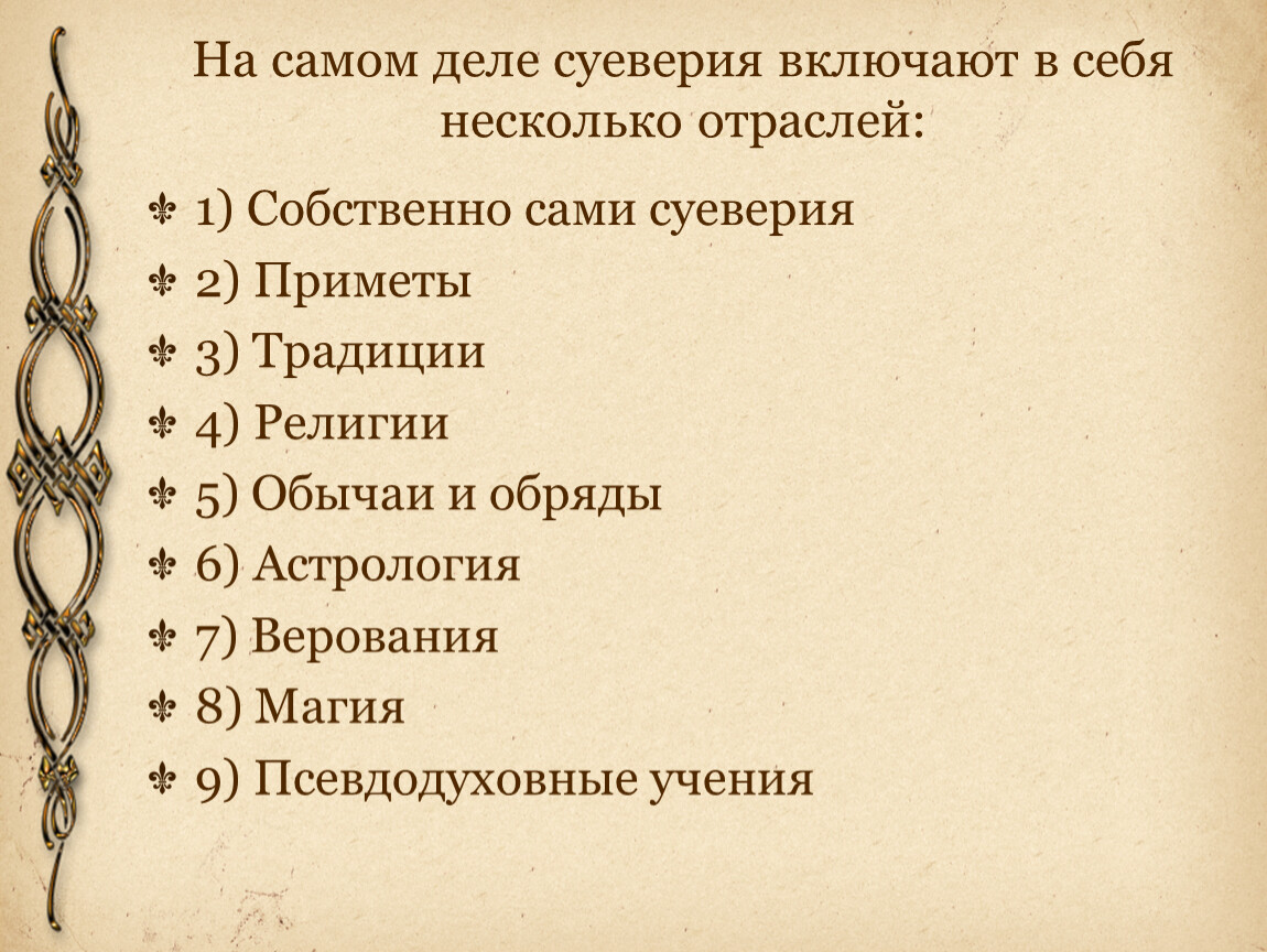 3) Развитие науки о паранормальных явлениях находится на довольно низком уровне, а изучение примет и суеверий способствует небольшому продвижению в области этих знаний.